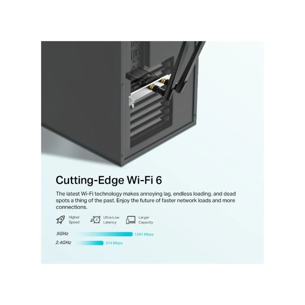 Neprimerljiva hitrost Wi-Fi 6—podira gigabitno oviro s hitrostjo do 1201 Mb/s (5 GHz) + 574 Mb/s (2,4 GHz)