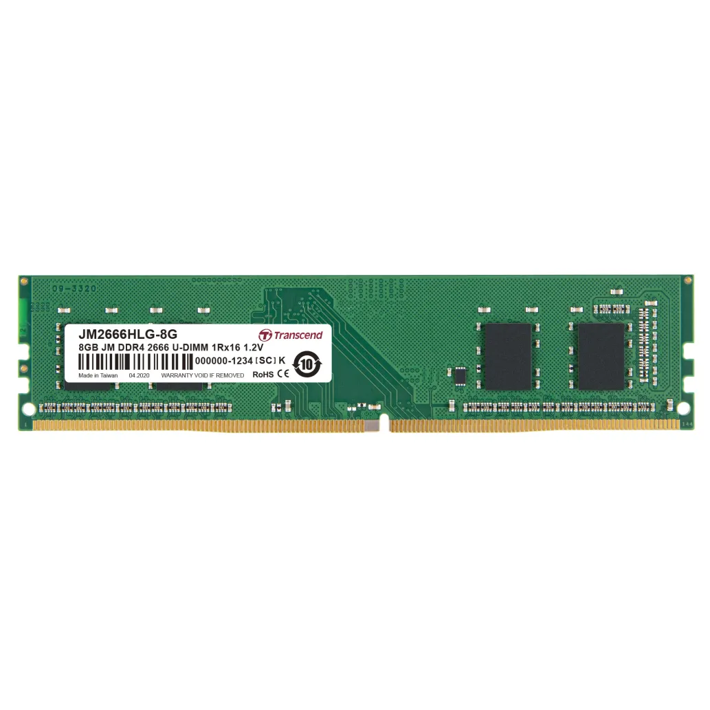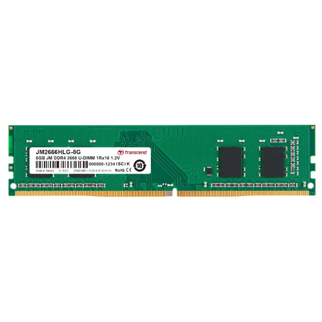 Transcend JetRam JM2666HLG-8G. Komponente za: osebni računalnik / strežnik, RAM pomnilnik: 8 GB, razporeditev pomnilnika (moduli x velikost): 1 x 16 GB, vrsta notranjega pomnilnika: DDR4, frekvenca pomnilnika: 2666 MHz, faktor oblike pomnilnika: 288-pinski DIMM, latenca CAS : 19