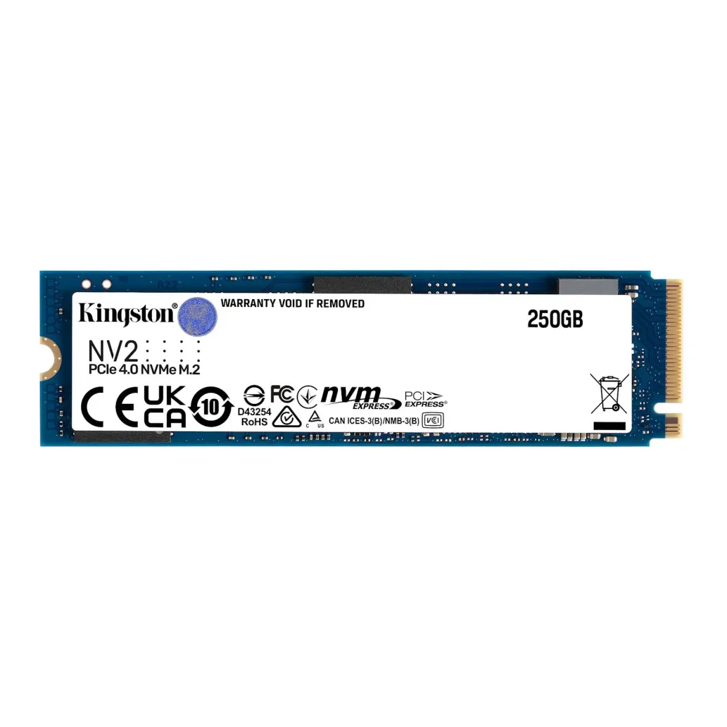 Kingston Technology NV2. Shranjevalna zmogljivost SSD: 250 GB, Faktor oblike SSD: M.2, Hitrost branja: 3000 MB/s, Hitrost pisanja: 1300 MB/s, Komponenta za: PC/Prenosnik.
