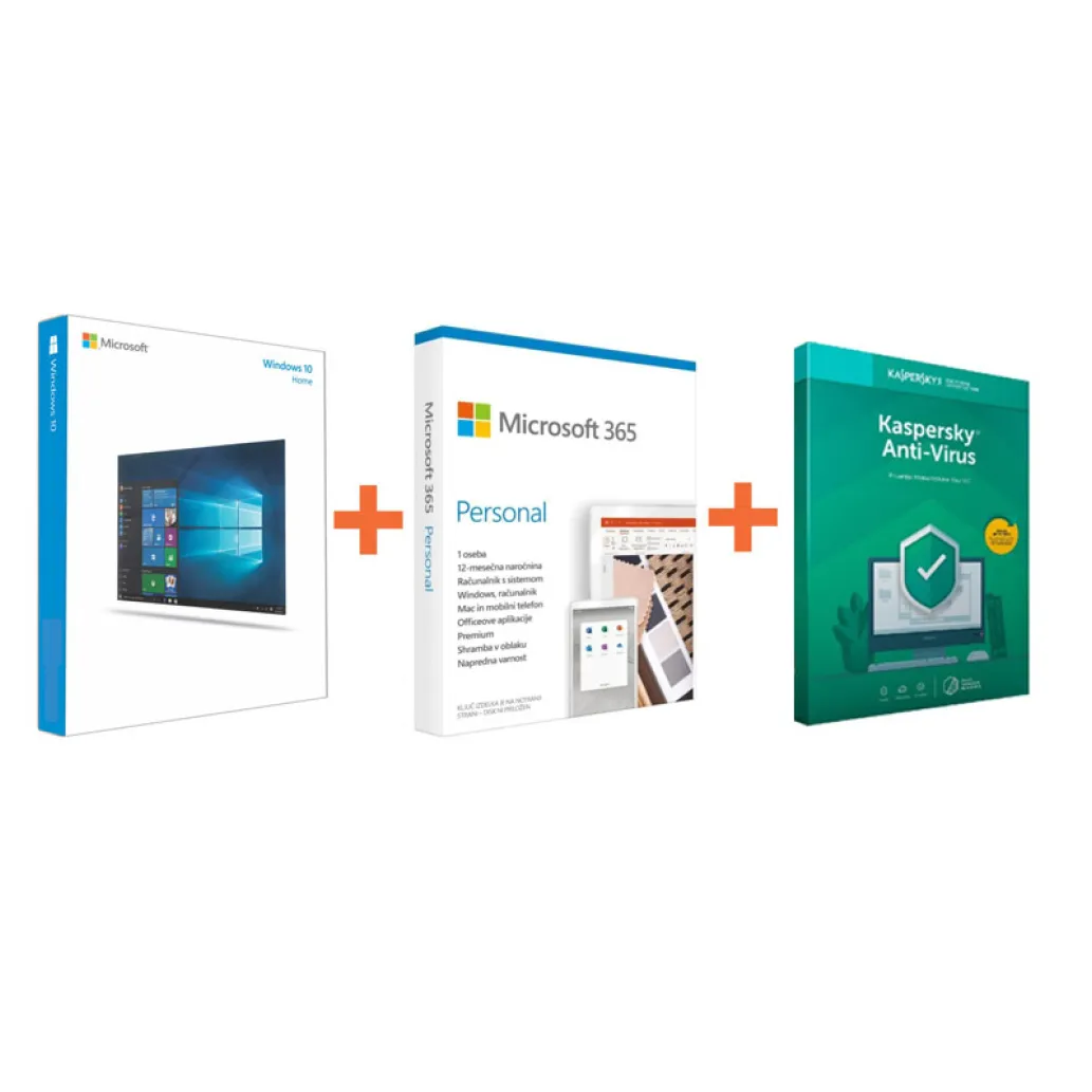 Doplačilo samo z novim računalnikom – Windows 10 Home 64Bit DSP + Microsoft 365 Personal SLO + Antivirus Kaspersky