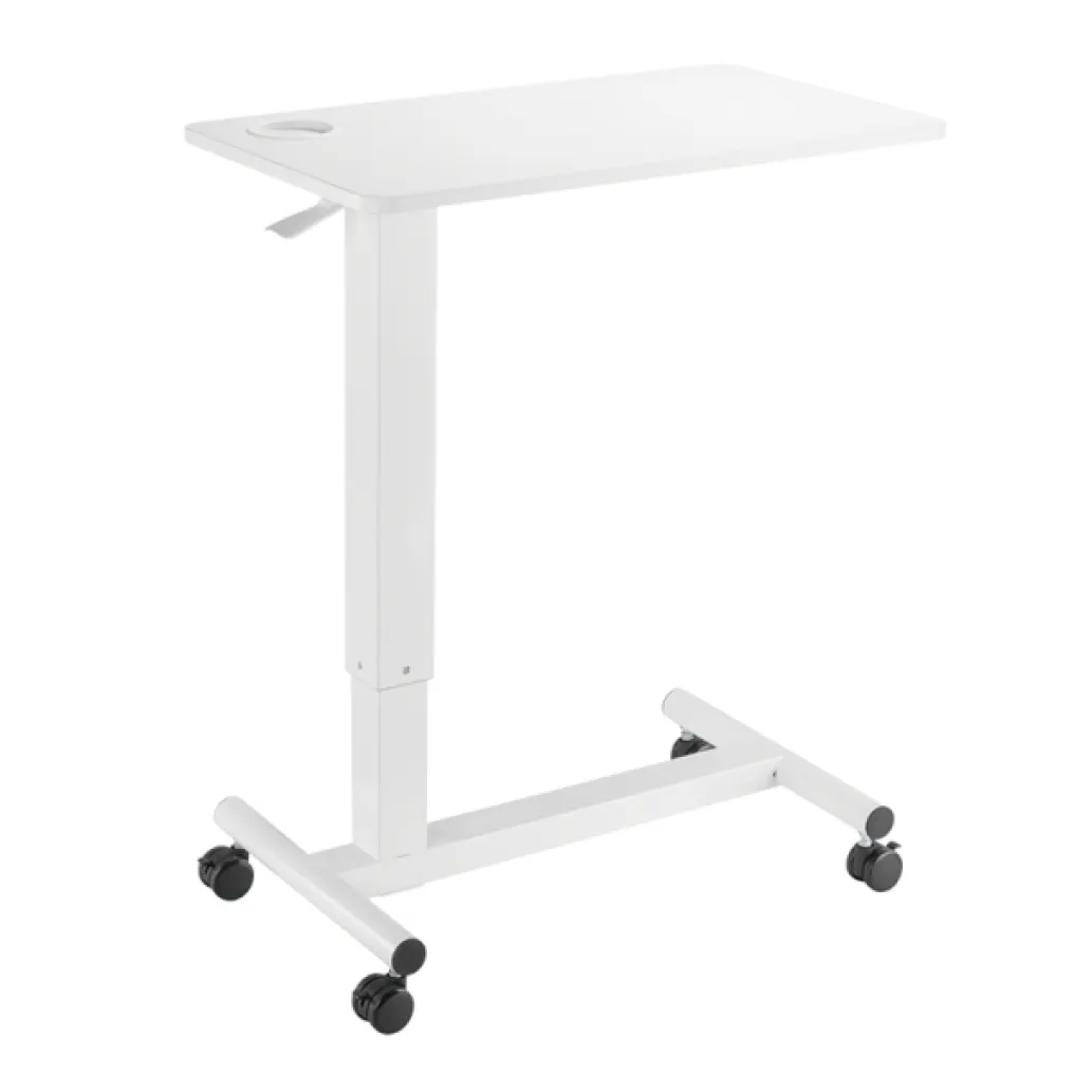 Maksimalno udobje in prilagodljivost širokemu spektru potreb! Z močnim jeklenim okvirjem in plinskimi vzmetmi, ki zagotavljajo gladko in enostavno nastavitev višine za vsako sobno okolje, je EO0041 idealen za uporabo doma, v pisarni in bolnišnici. Kolesca za zaklepanje vam omogočajo, da mizo postavite kamor koli želite.