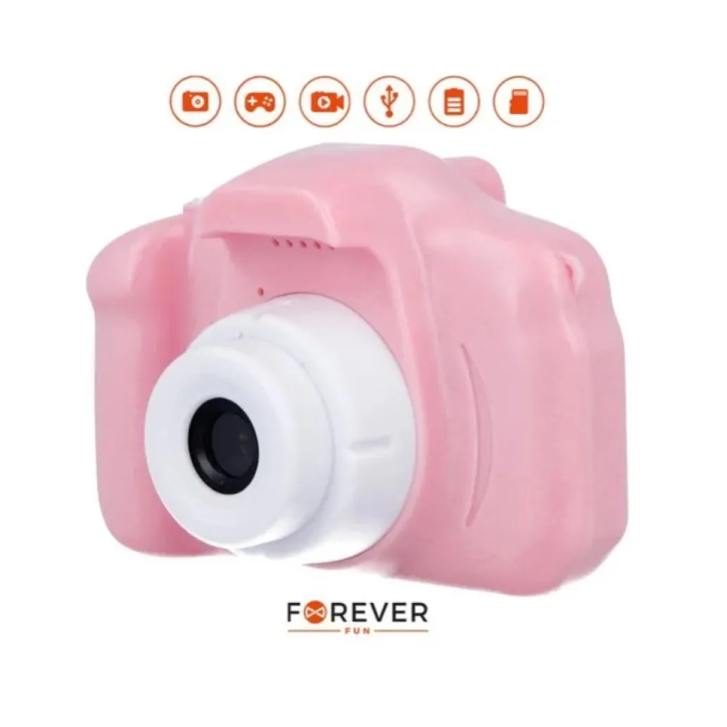 Otroški fotoaparat proizvajalca FOREVER je izvrstna igrača za vaše najmlajše, katera poleg fotografiranja omogoča tudi snemanje videoposnetkov. Je izjemno priročen pripomoček za krajšanje časa vaših malčkov in hkratna združitev zabave in tehnologije na edinstven način.