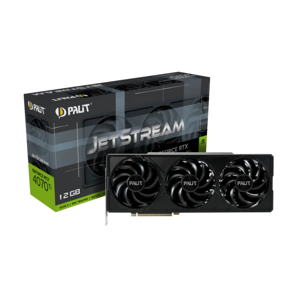 Palit GeForce RTX 4070 Ti JetStream – Grafična kartica – GeForce RTX 4070 Ti – 12 GB GDDR6X – PCIe 4.0 – HDMI, 3 x DisplayPort – jet black – box