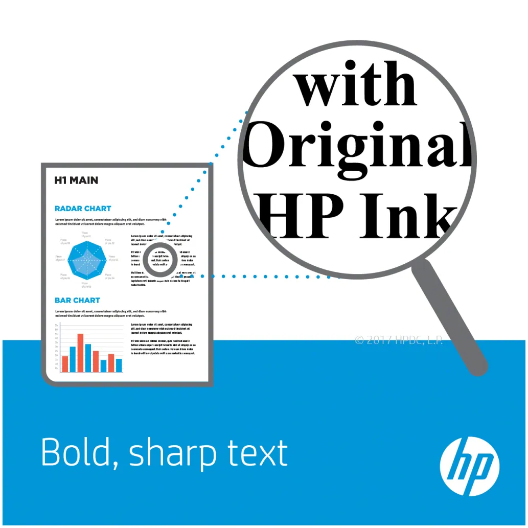 – Zahvaljujoč brezhibnemu tiskanju z originalnim HP-jevim potrošnim materialom se lahko izognete izgubi časa z zamudnimi poskusi in napakami. Tiskalne glave HP so zasnovane skupaj z originalnimi HP-jevimi črnili in HP-jevimi tiskalniki za dosledno, ostro, jasno in natančno kakovost tiskanja.