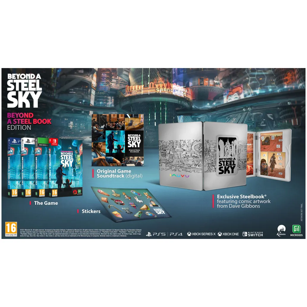 Ustvarjalec serije Broken Sword Charles Cecil in legendarni risar Dave Gibbons (Watchmen) sta združila moči pri projektu Beyond a Steel Sky, dolgo pričakovanem nadaljevanju kultne klasike Beneath a Steel Sky. Prelevite se v vlogo Roberta Fosterja, ki se je zaobljubil, da bo našel ugrabljenega otroka. Sled vas je pripeljala v Union City, eno zadnjih megamest v svetu, ki so ga razdejale vojne in politična neskladja. Union City je utopija, kjer ljudje živijo pod nadzorom človekoljube umetne pameti. Toda mesto skriva temačne skrivnosti … Beyond a Steel Sky je dramatičen in humoren kiberpankovski triler, v katerem zanimive uganke poganjajo napeto zgodbo, umeščeno v dinamičen svet, ki se odziva na igralčeva dejanja.