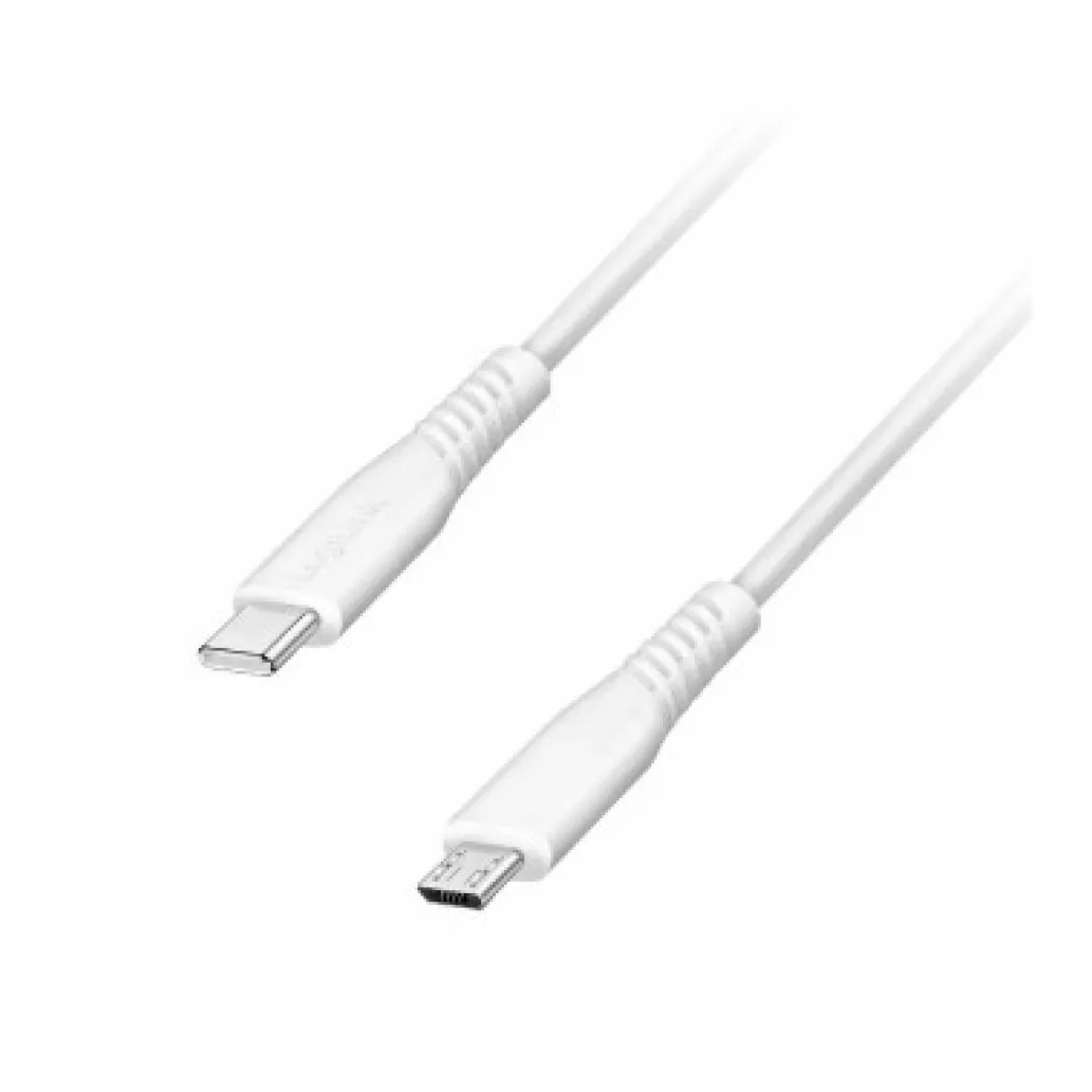 USB kabel omogoča povezavo med napravami z modernim priključkom USB-C in starejšimi napravami z Micro-USB vhodom. Namenjen je tako polnjenju kot prenosu podatkov, zato predstavlja praktično rešitev za vsakodnevno uporabo doma, v pisarni ali na poti.