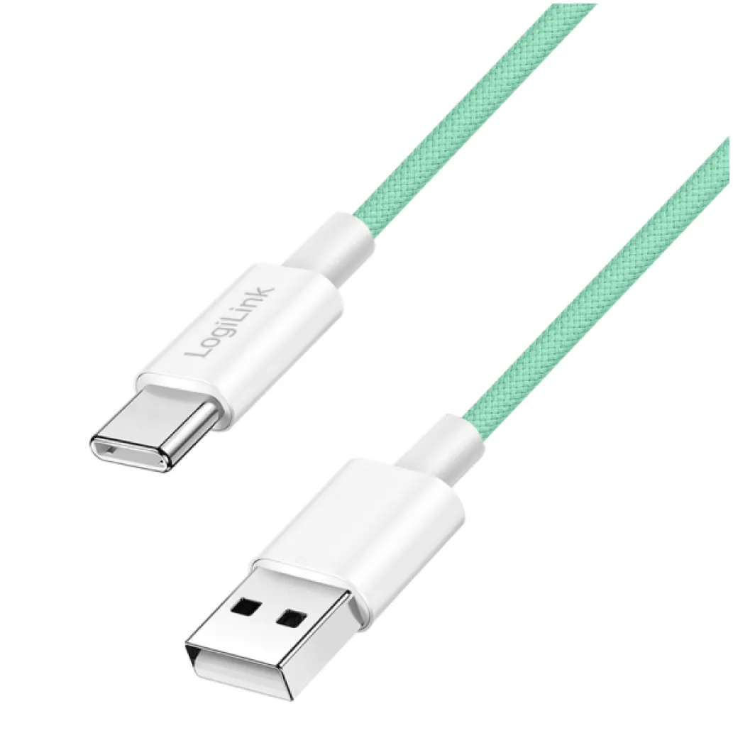 Kabel USB-C (m) => USB-A (m) 2.0 najlon ovoj 1,0m 60W 3A/20V 480Mbps PD3 zelen LogiLink (CU0327)
