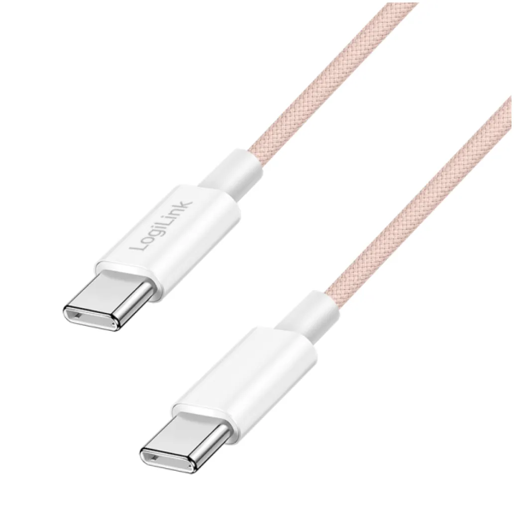 Kabel USB-C (m) => USB-C (m) 2.0 najlon ovoj 0,50m 60W 3A/20V 480Mbps PD3 roza LogiLink (CU0343)
