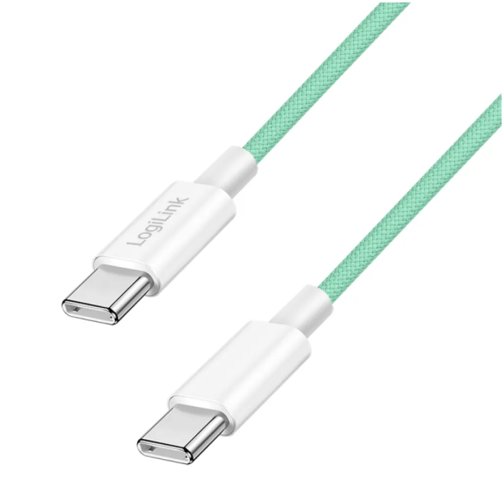 -- E-misija.siKabel USB-C (m) => USB-C (m) 2.0 najlon ovoj 1,5m 60W 3A/20V 480Mbps PD3 zelen LogiLink (CU0348)