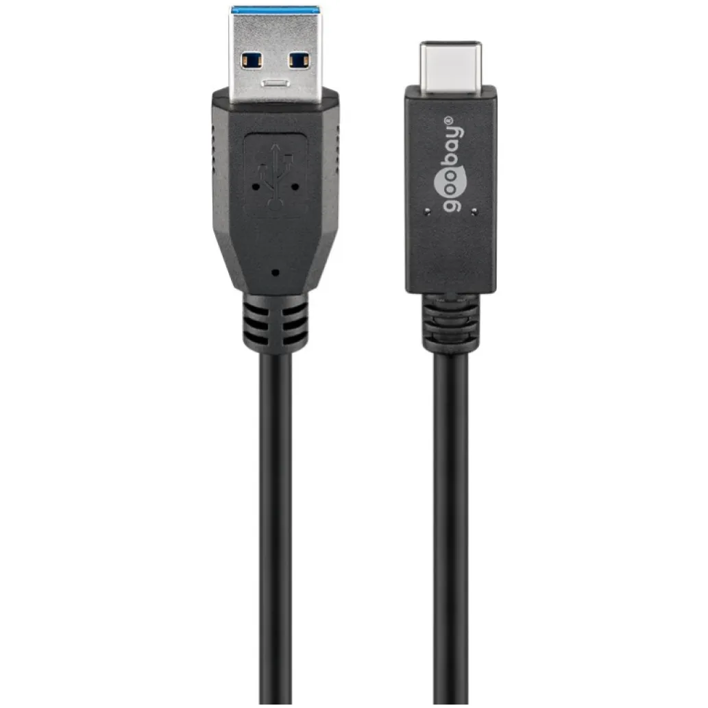 GOOBAY USB (Type A) / USB-C 0,5m črn podatkovni polnilni kabel