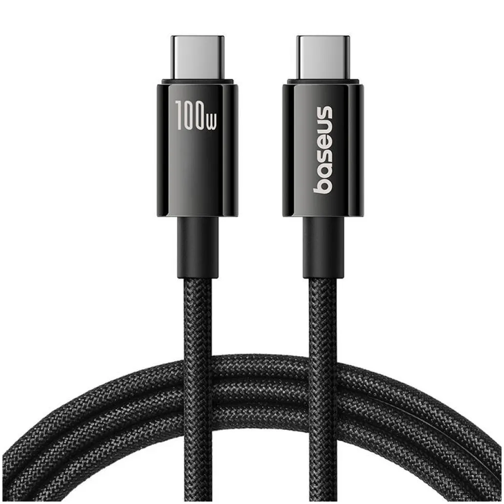 Kabel Baseus Tungsten Gold USB-C na USB-C (USB 3.2) lahko prenaša datoteke s hitrostjo do 20 Gbps in podpira hitro polnjenje z močjo do 100 W ter zagotavlja kakovost videa 4K/60 Hz. Je tudi zelo vzdržljiv in odporen na poškodbe. Zaradi tega je odličen za številne aplikacije.