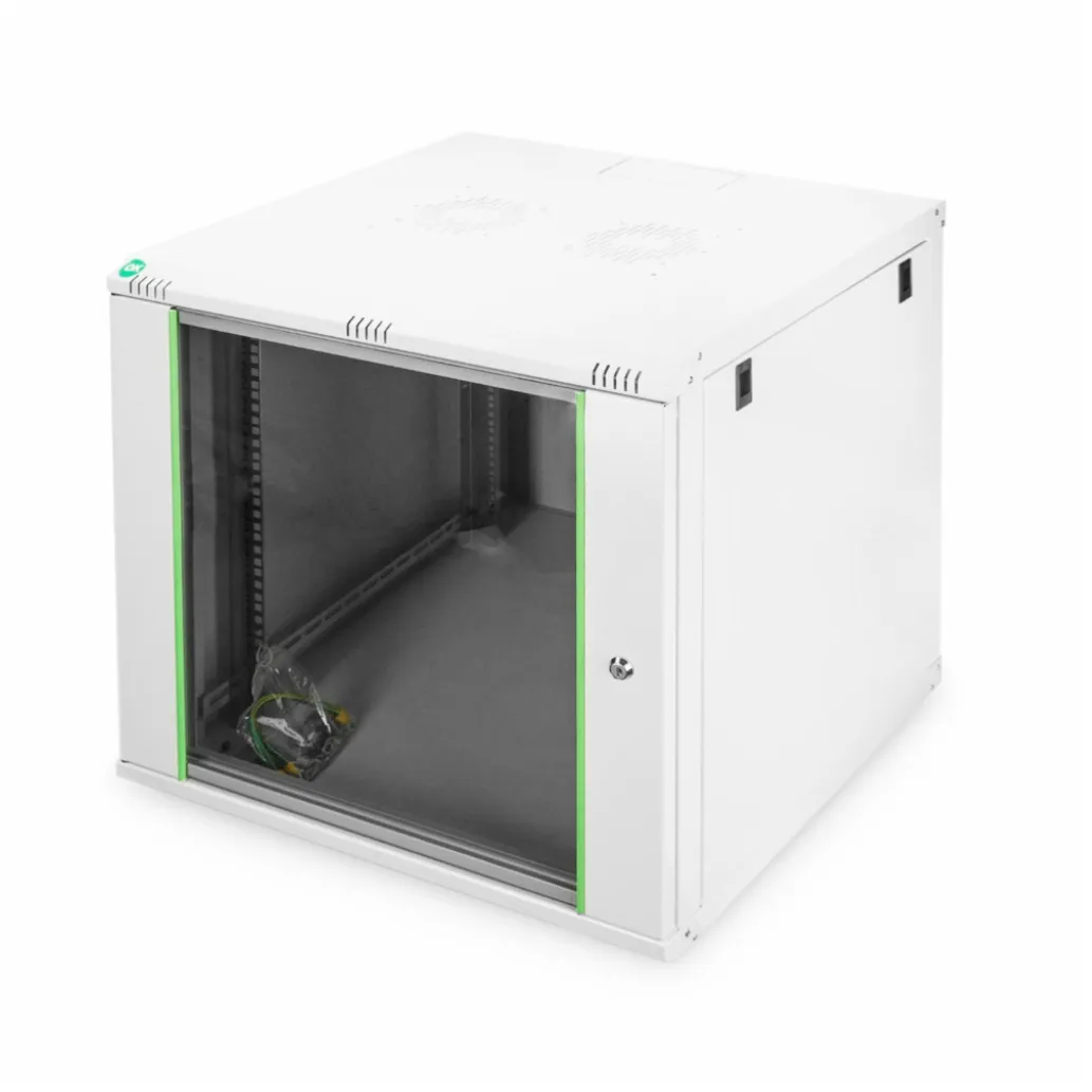 Digitus komunikacijska omara 12U za zidno montažo s snemljivima stranicama, Model Dynamic Basic, Eleganta oblika, Lahka, Ključavnica, sive barve, dimenzija: višina 12U 638 mm, širina 600 mm in globina 600 mm…