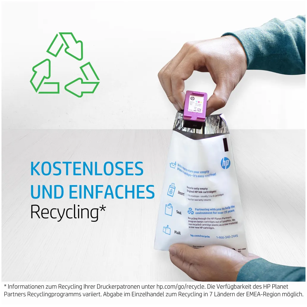 Računajte na profesionalne dokumente z živimi barvami. Originalne HP-jeve kartuše s črnilom nudijo izjemno zanesljivost za zanesljivo delovanje in izkoristek ter dolgotrajne rezultate tiskanja.[1] Tiskajte s posameznimi barvami in dodatnimi kartušami s črnilom z visokim izkoristkom.[2,3]< /sup>