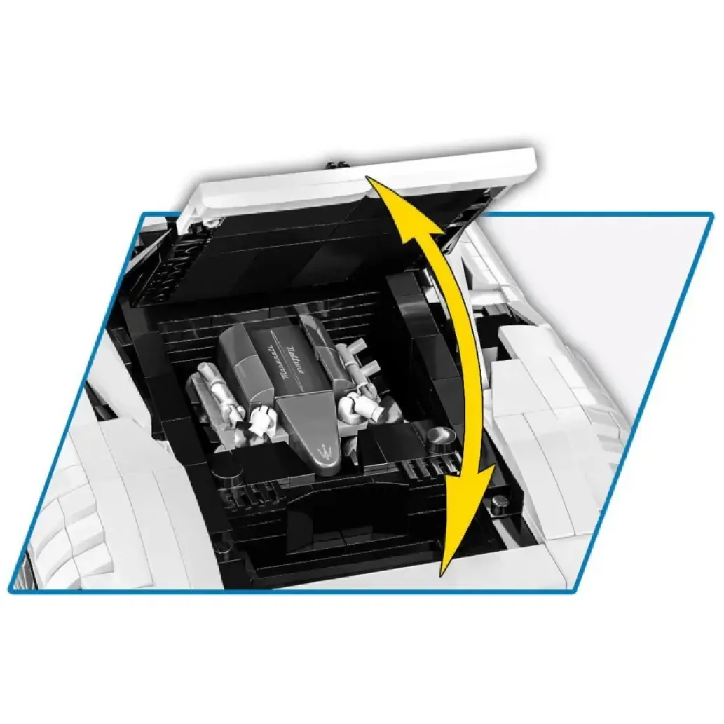 Uživajte v interaktivnih funkcijah, kot so odpirajoča vrata, vrteča se kolesa in delujoče krmilo. Osrednje nameščen motor V6 je prav tako zvesto poustvarjen z opeko.