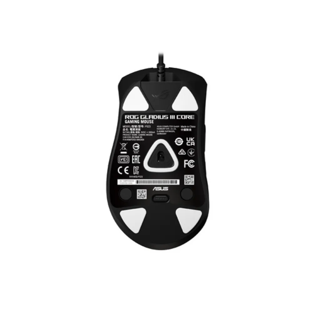 Prenovljena ROG klasika. Gladius III Core ohranja asimetrično obliko, a jo nadgradi z novo teksturo, ki prinaša boljši občutek za vsakodnevno igranje. Opremljena je z mikro stikali ter podpira Push-Fit Socket sistem, ki dovoljuje enostavnejšo menjavo stikal za daljšo življenjsko dobo miške.