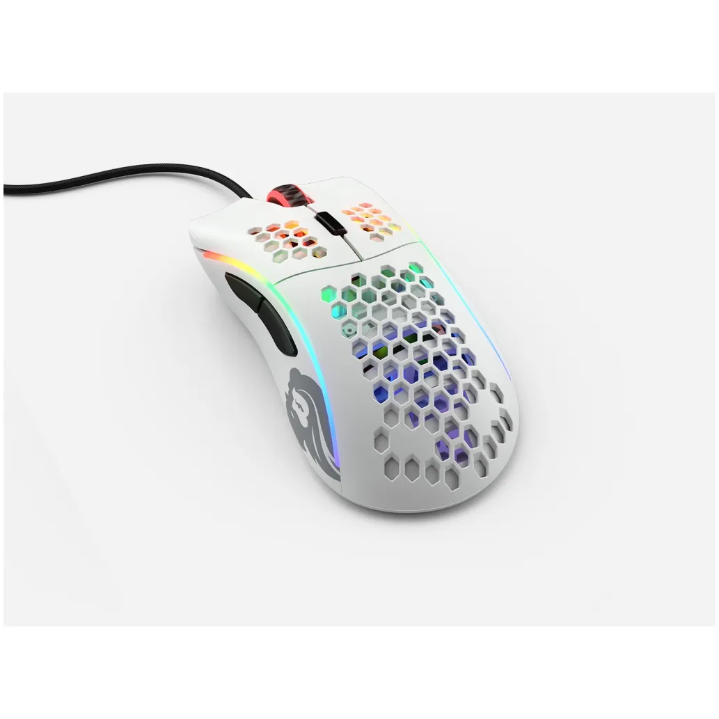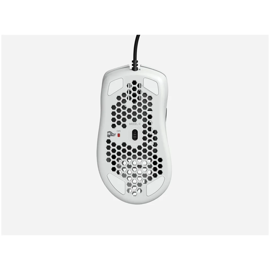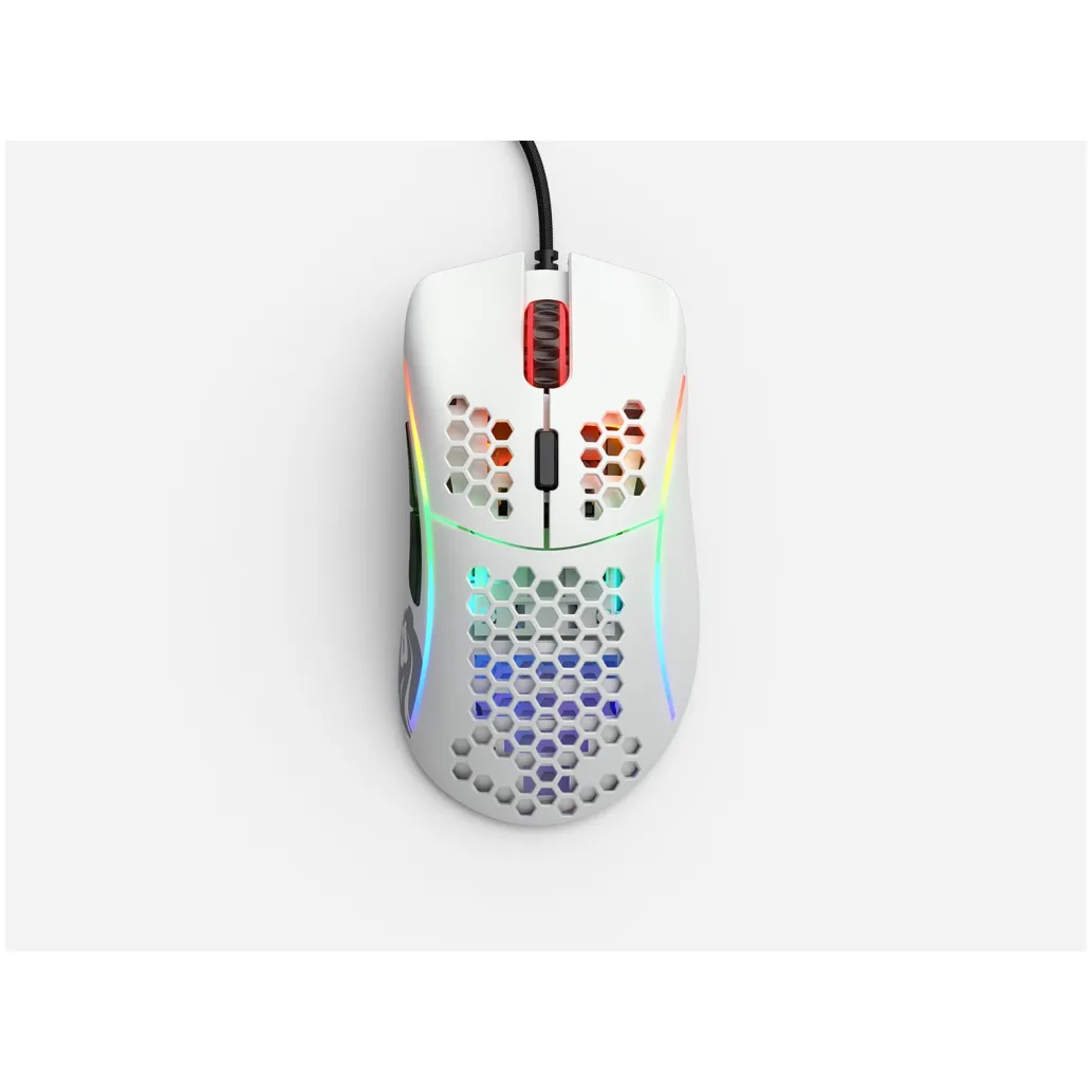Glorious PC Gaming Race Model D. Oblika: desno. Tehnologija zaznavanja gibanja: Optična, Vmesnik naprave: USB Type-A, Ločljivost gibanja: 12000 DPI, Odzivni čas: 1 ms, Tip gumba: Pritisnjeni gumbi, Število gumbov: 6, Vrsta pomika: Kolo, Pospešek (Maks.): 50 G Barve osvetlitve: več. Vir napajanja: kabel. Barva izdelka: Bela