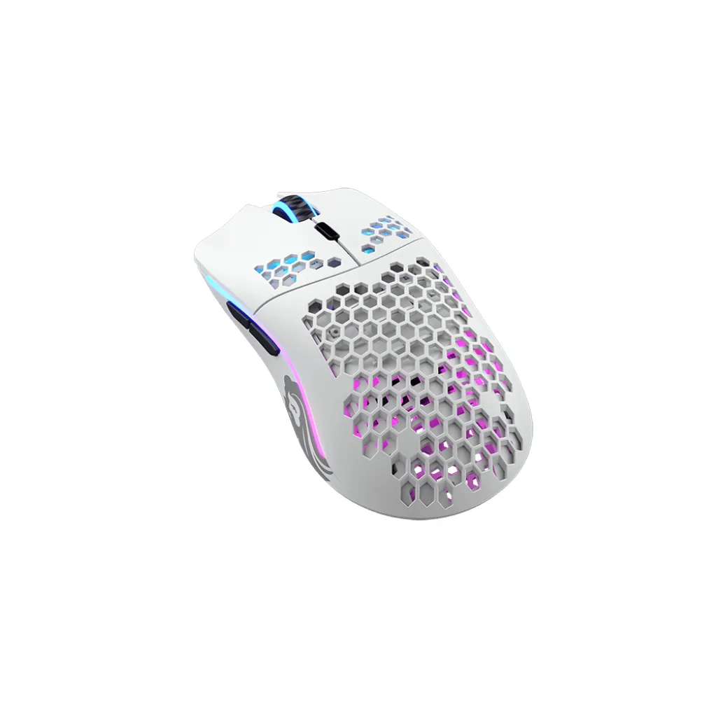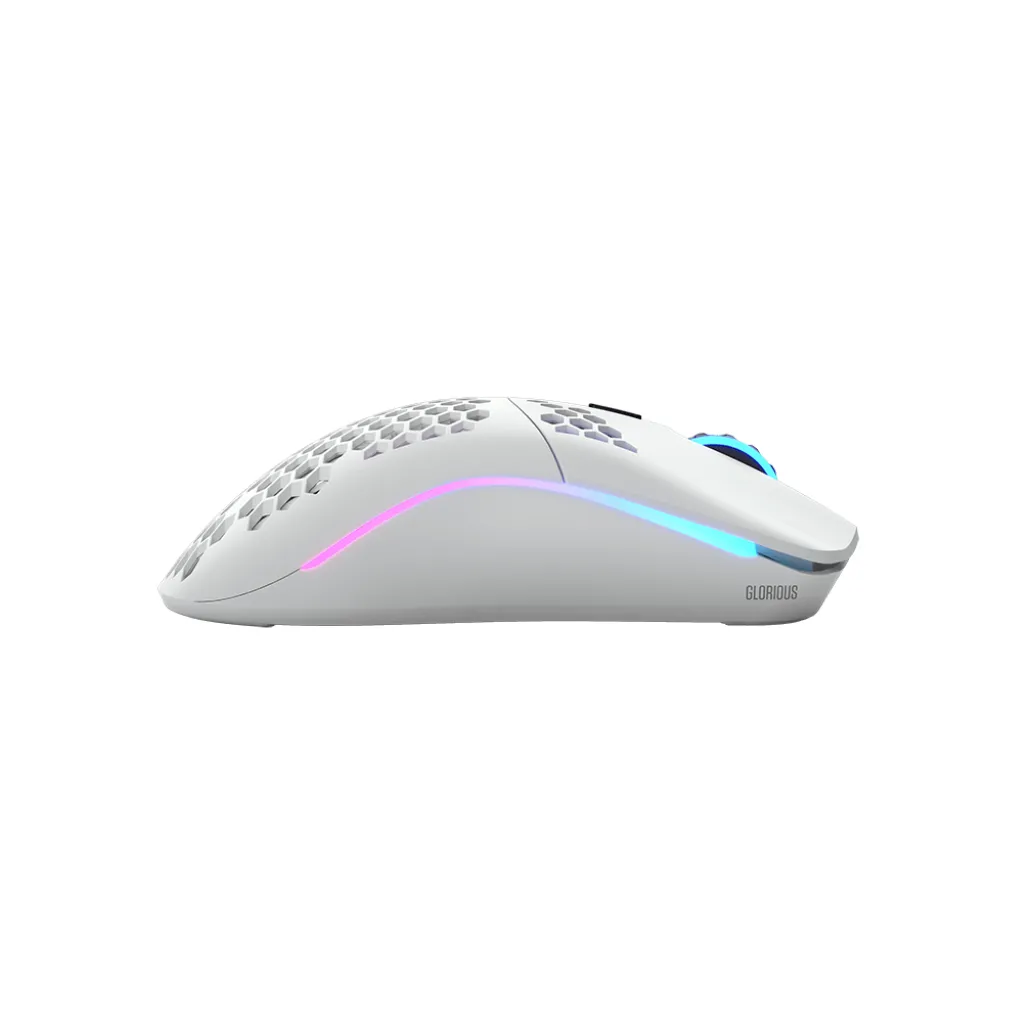 Glorious PC Gaming Race Model O Wireless. Oblika: Desna. Tehnologija zaznavanja gibanja: Laser, Vmesnik naprave: RF Wireless+USB Type-C, Ločljivost gibanja: 19000 DPI, Odzivni čas: 1 ms, Vrsta gumba: Pritisnjeni gumbi, Število gumbov: 6, Vrsta pomikanja: Kolo, Pospešek (maks.) : 50 G. Barve osvetlitve: Multi. Vir napajanja: baterije/kabli. Barva izdelka: Bela