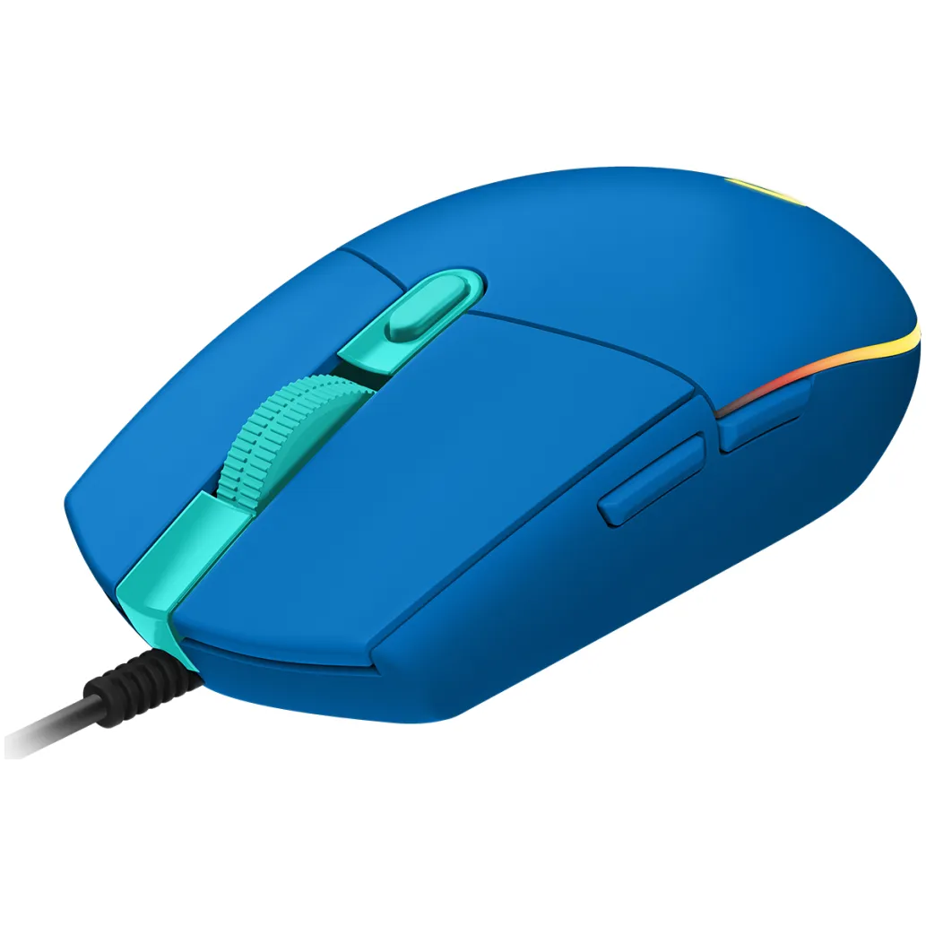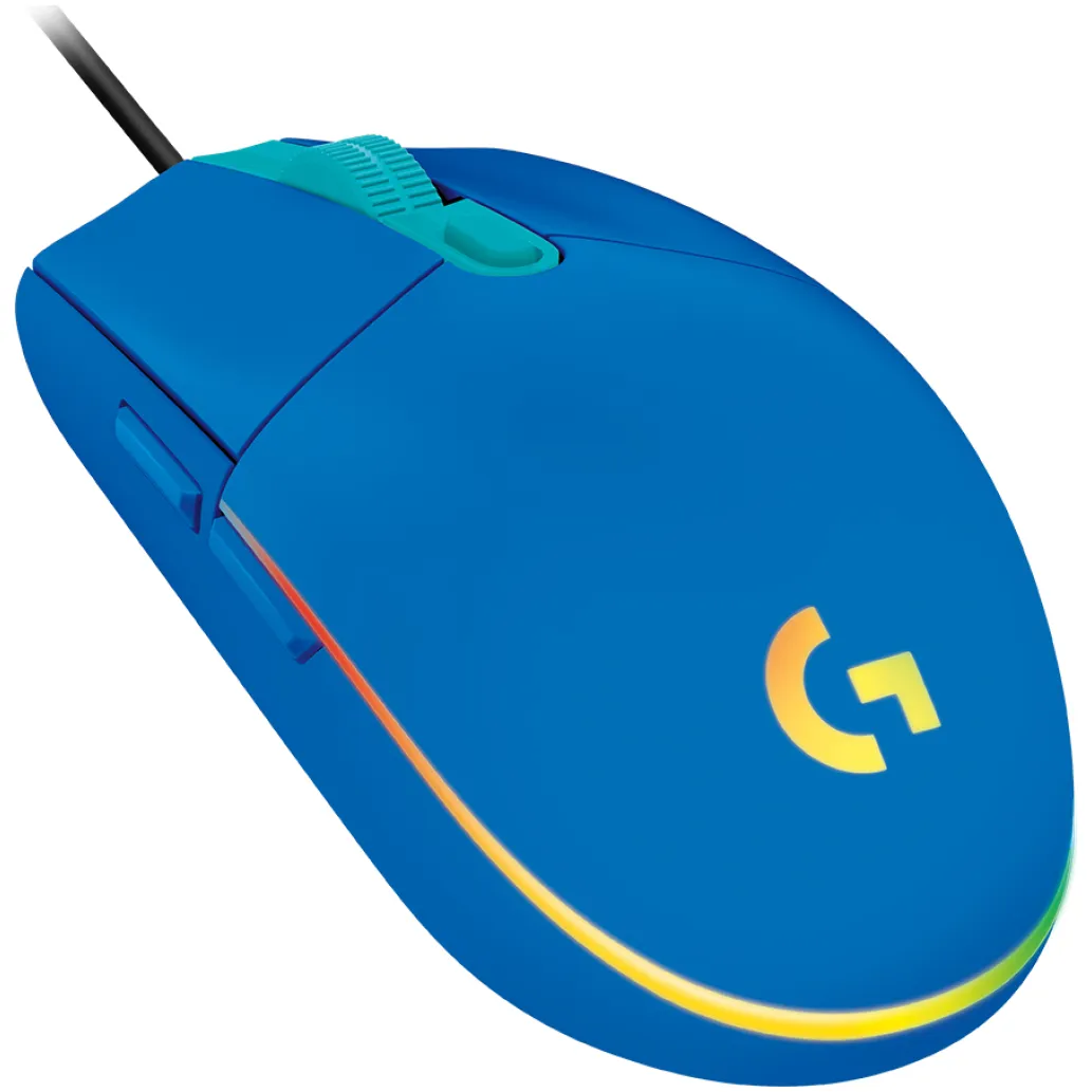 Logitech G G203 LIGHTSYNC. Vmesnik naprave: USB Type-A, Ločljivost gibanja: 8000 DPI, Odzivni čas: 1 ms, Tip gumba: Pritisnjeni gumbi, Število gumbov: 6, Vrsta drsenja: Kolesce. Barve osvetlitve: modra, zelena, rdeča. Vir napajanja: kabel. Barva izdelka: modra