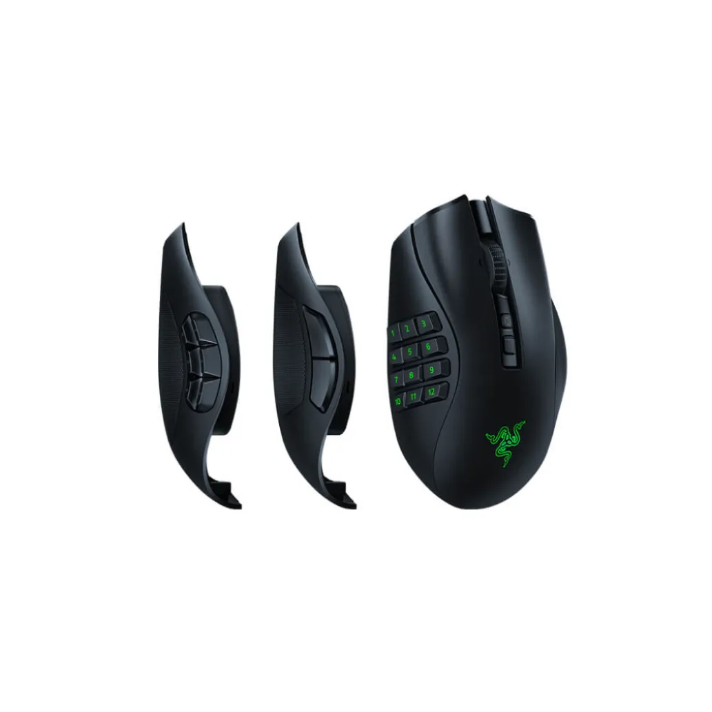 Naga V2 Pro omogoča menjavanje stranskih ploščic z različnimi gumbi. V paketu je set magnetnih ploščic z 12, s 6 in z 2 gumboma, ki omogoča prilagoditev za vsako vrsto igre z do 20 programabilnimi gumbi. Miška je opremljena tudi s prilagodljivim koleščkom, ki omogoča preklaplanje med 5 prednastavljenimi in enim prilagodljivim načinom. Kolešček se lahko premika povsem gladko ali po stopnjah, odvisno od nastavitve.