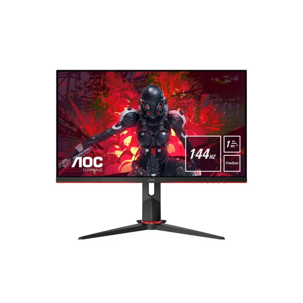 Konkurenčni igralci iger bodo cenili resnično barvni 27-palčni zaslon IPS s hitrostjo osveževanja 144 Hz, odzivnim časom MPRT 1 ms in podporo FreeSync Premium. Zasnova brez okvirja je izpopolnjena z rdečimi poudarki.