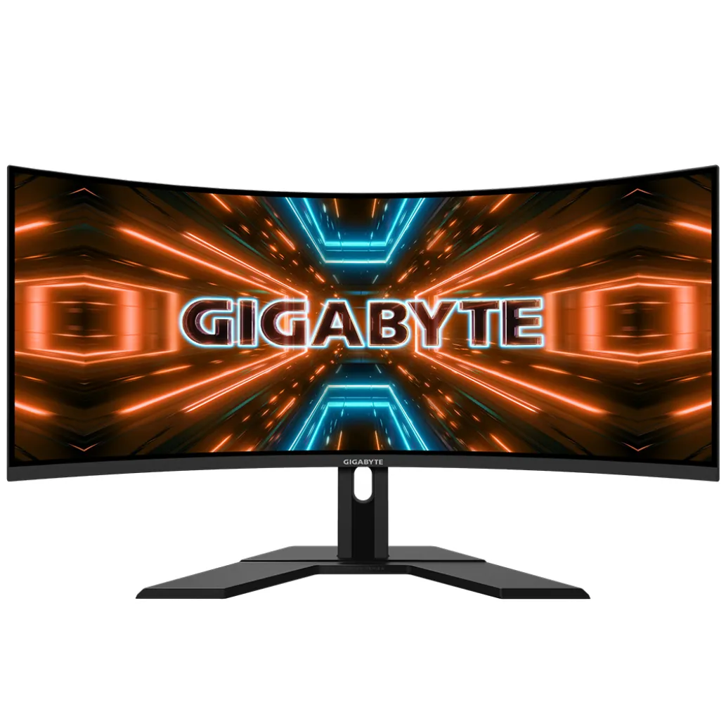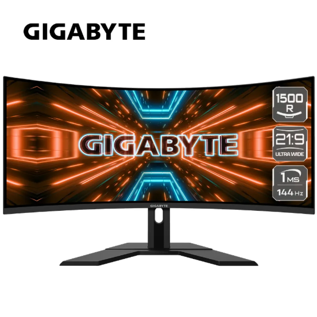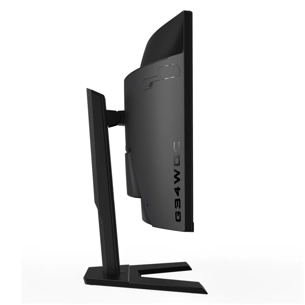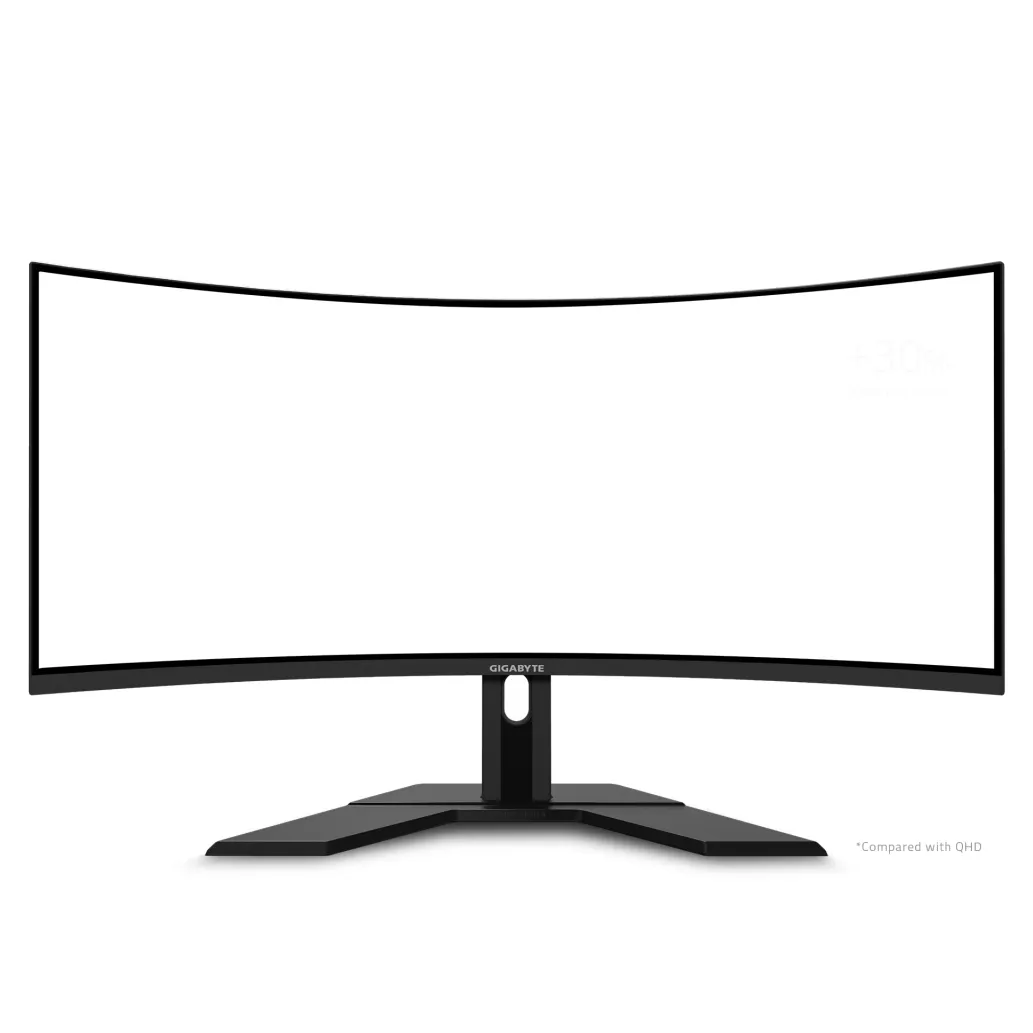 Gigabyte G34WQC. Diagonala zaslona: 86,4 cm (34 palcev), ločljivost zaslona: 3440 x 1440 slikovnih pik, vrsta HD: Quad HD, tehnologija zaslona: LED, površina zaslona: mat, odzivni čas: 1 ms, izvorno razmerje stranic: 21: 9, vidni kot vodoravno: 178 °, vidnim kotom, vertikalni: 178 °. Vgrajeni zvočniki. VESA nosilec, nastavitev višine. Barva izdelka: črna