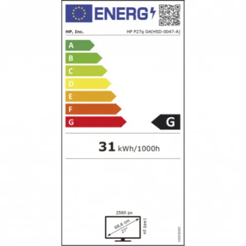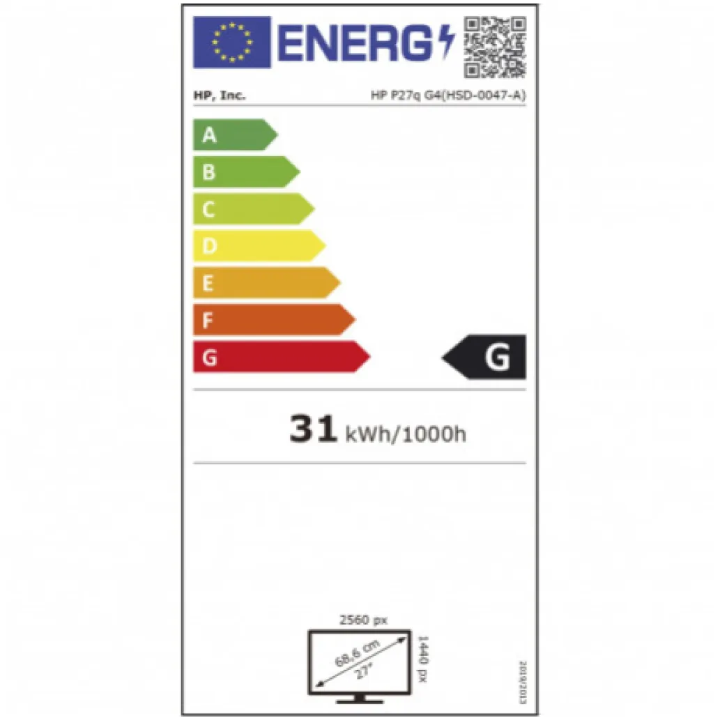 HP P27q G4 QHD monitor za nastavitev višine. Diagonala zaslona: 68,6 cm (27 palcev), ločljivost zaslona: 2560 x 1440 slikovnih pik, vrsta HD: Quad HD, tehnologija zaslona: LED, odzivni čas: 5 ms, izvorno razmerje stranic: 16:9, vidni kot, vodoravno: 178° , kot gledanja, navpično: 178°. VESA nosilec, nastavitev višine. Barva izdelka: Črna