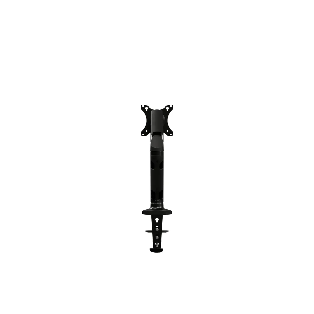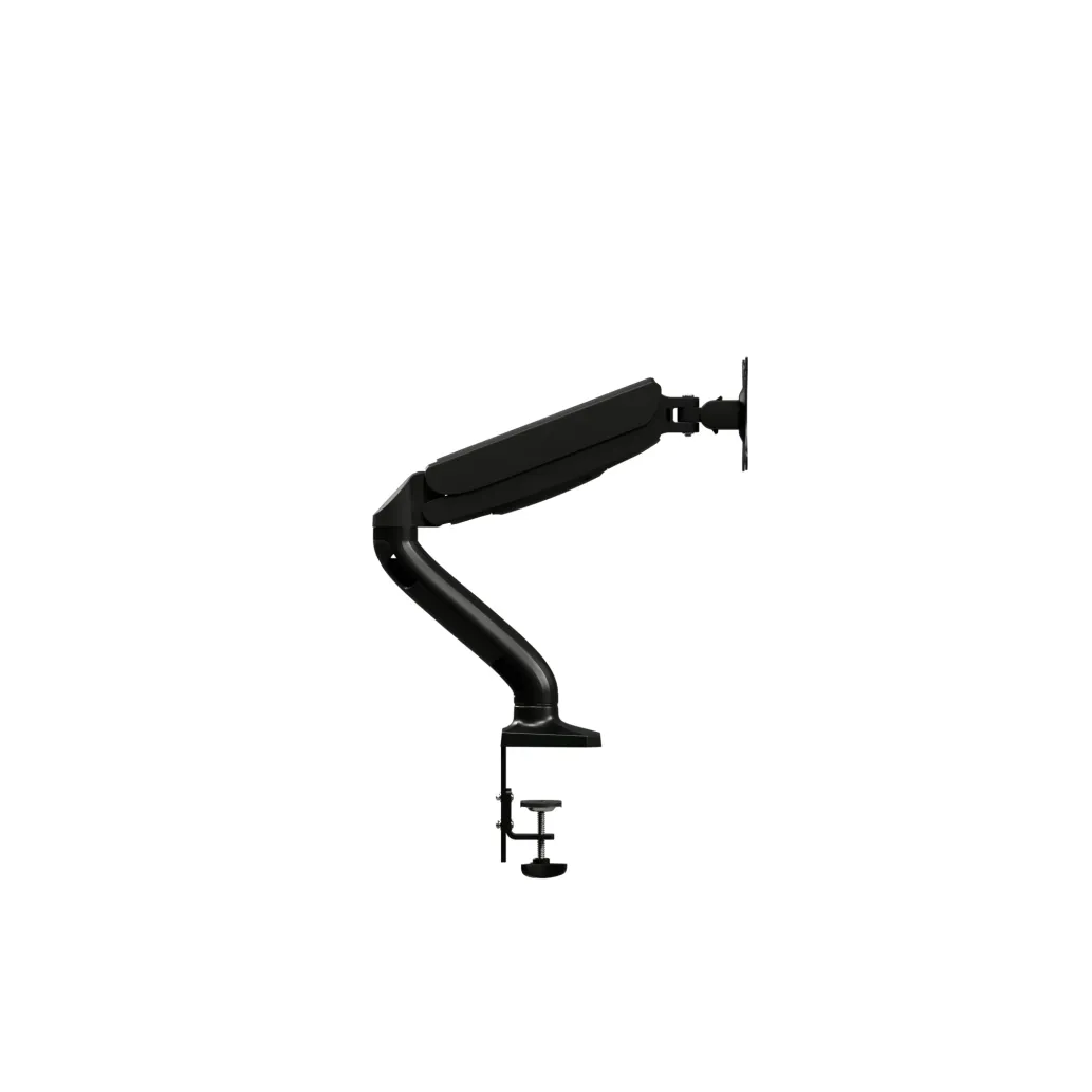 Enojna nosilna roka AOC AS110D0 omogoča montažo na mizo in podpira monitorje velikosti do 27″. S pomočjo treh ločenih spojev je ta naprava izjemno prilagodljiva. Višino zaslona lahko nastavite v razponu do 320 mm, tako da uporabniki lahko uporabljajo monitor tudi v stoječem položaju. Roka podpira širok razpon nagiba (-45°/+60°), območje vrtenja -90°/+90° in območje 360° na točki vrtenja, kar omogoča postavitev monitorja v pokončni in ležeči način ali katerikoli položaj vmes.