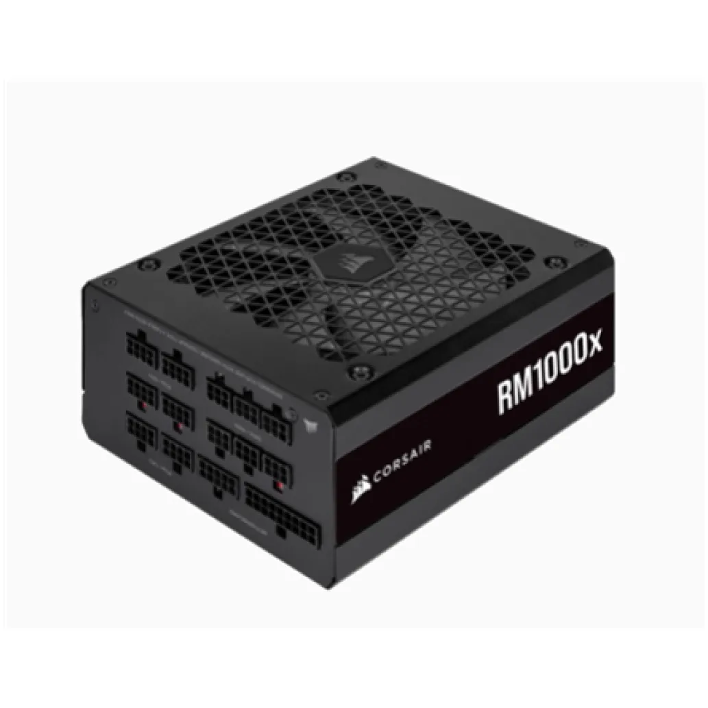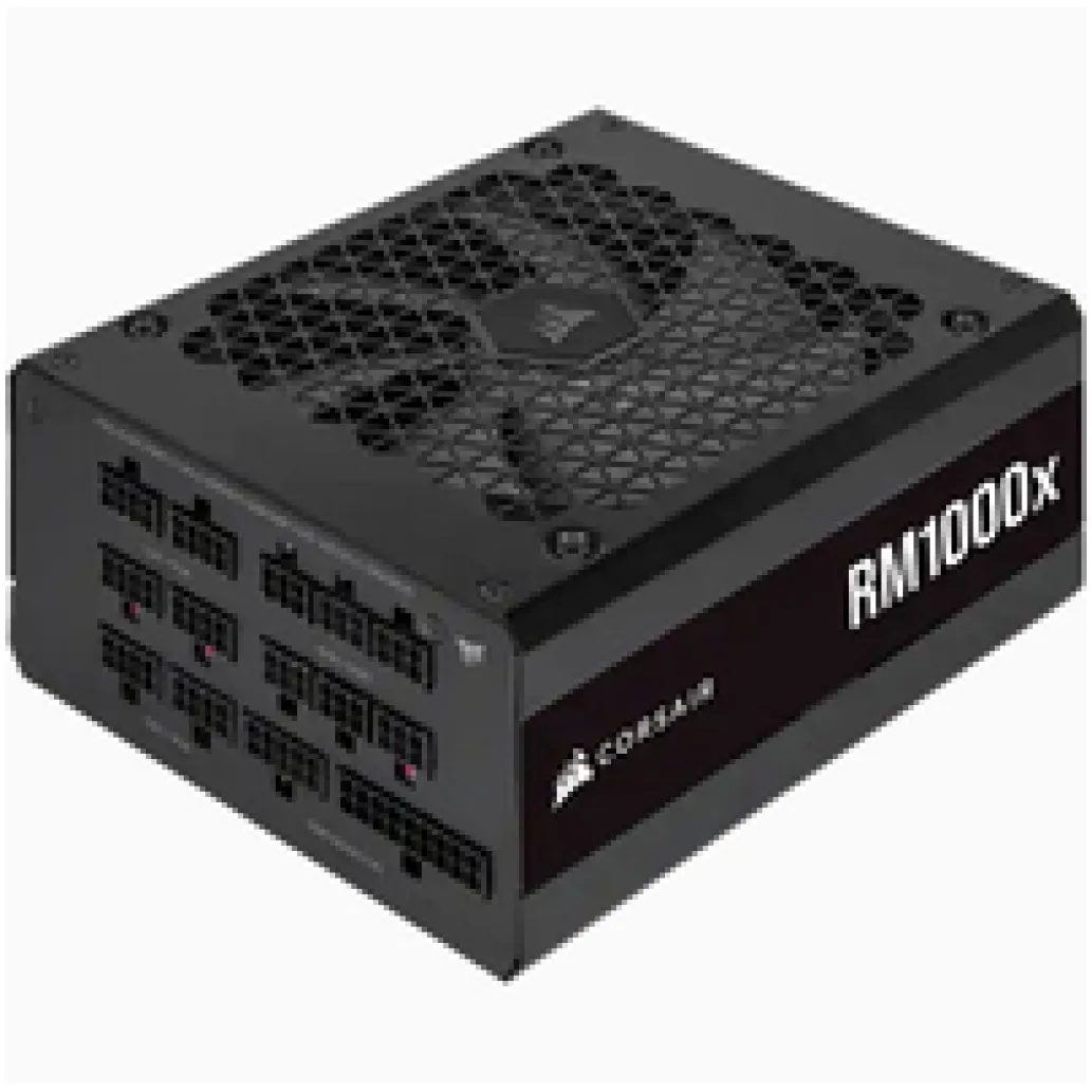 Corsair RM1000x. Skupna moč: 1000 W, AC vhodna napetost: 100 – 240 V, AC vhodna frekvenca: 47 – 63 Hz. Konektor za matično ploščo: 24-polni ATX, Vrsta kabla: Modularni. Namen: osebni računalnik / strežnik, napajalna enota (PSU) Faktor oblike: ATX, certifikat 80 Plus: 80 PLUS Gold. Barva izdelka: Črna, Hlajenje: Aktivno, Premer ventilatorja: 13,5 cm. Teža: 2 kg.