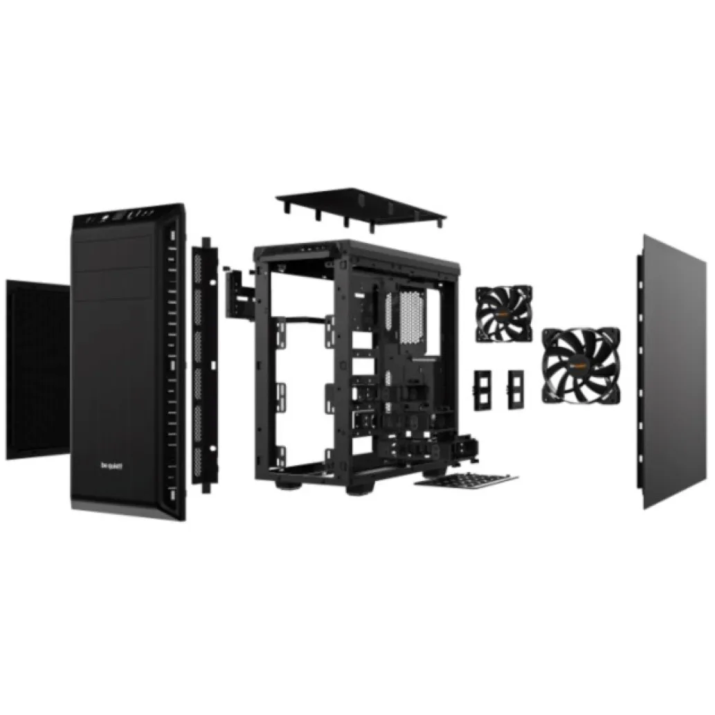 Bodi tiho! Pure Base 600. Oblika: Midi Tower, Tip: PC, Material: ABS sintetika, Jeklo. Podprti faktorji oblike napajalnika: ATX. Vgrajeni ventilatorji (spredaj): 1x 140 mm, Podprti premer sprednjih ventilatorjev: 120.140 mm, Vgrajeni zadnji ventilatorji: 1x 120 mm. Podprte velikosti trdega diska: 2,5, 3,5 palca. Širina: 220 mm Globina: 492 mm Višina: 470 mm