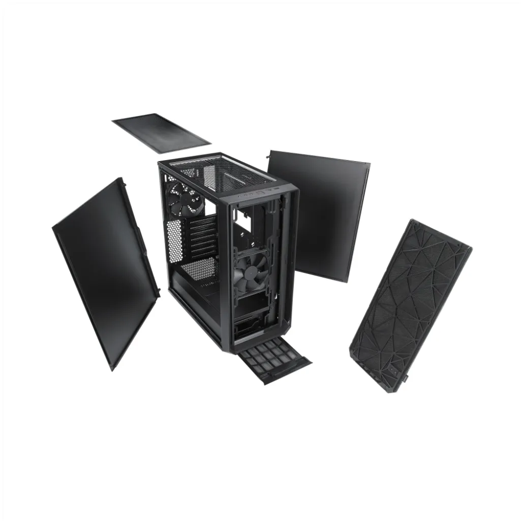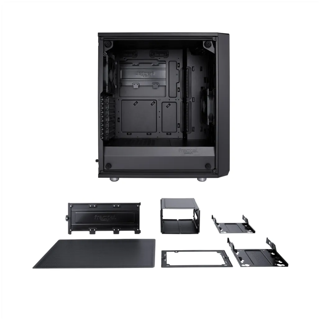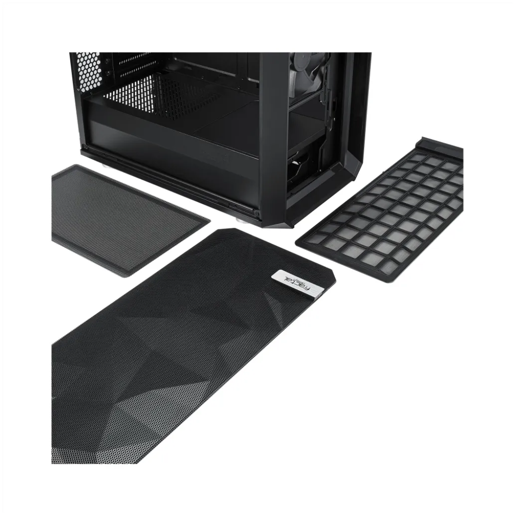 Fractal Design Meshify C. Faktor oblike: Midi Tower, Tip: PC, Barva izdelka: Črna. Postavitev napajalnika: Tla, Podprti faktorji oblike napajalnika: ATX. Nameščeni ventilatorji (spredaj): 1x 120 mm, Premer podprtih sprednjih ventilatorjev: 120.140 mm, Nameščeni ventilatorji zadaj: 1x 120 mm. Podprte velikosti trdih diskov: 2.5,3.5 palcev. Širina: 212 mm, Globina: 395 mm, Višina: 440 mm .