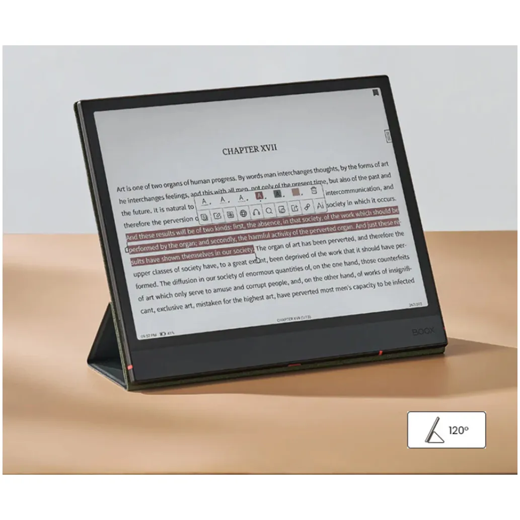 Poseben magnetni etui / ovitek za e-bralnike BOOX Note / Air4 C / Air3 C skrbi za varnost in povečuje uporabnost bralnika. Ovitek / etui je izdelan iz kakovostnega tekstila ter usnja in je z notranje strani dodatno obložen, kar povečuje varnost e-bralnika, ko je v ovitku.