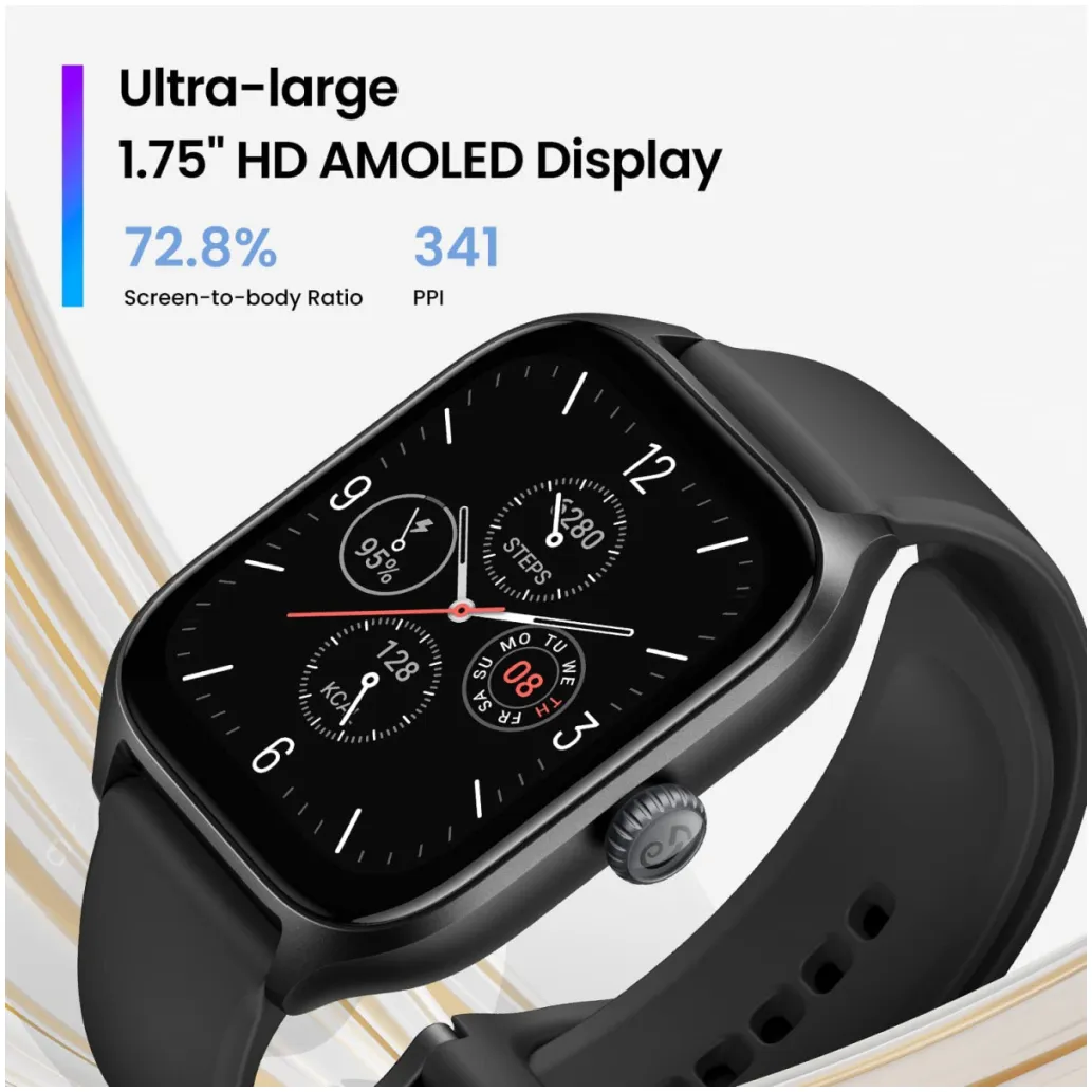 Izkoristite izjemno velik 1,75-palčni zaslon AMOLED pametne ure Amazfit GTS 4 in si oglejte podatke, pomembne za vaše dobro počutje, v brezhibni ločljivosti HD. Dovolj velik zaslon vam lahko omogoči celovit pregled nad vašimi zdravstvenimi podatki.