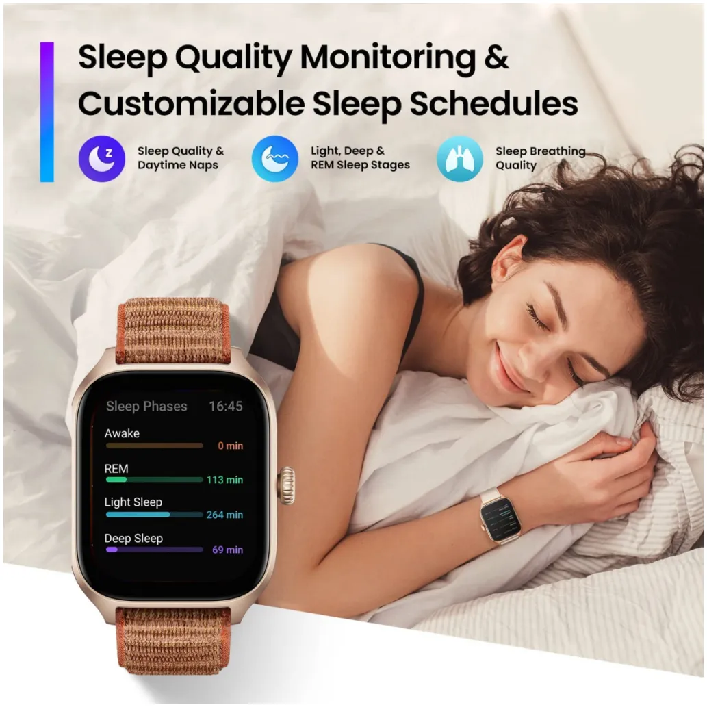 Izkoristite zanesljivo in natančno 24/7 spremljanje srčnega utripa, nasičenosti krvi s kisikom in ravni stresa. Pametna ura GTS 4 lahko zazna tudi vašo hitrost dihanja ter s preprostim dotikom hitro izmeri in oceni te 4 pomembne zdravstvene kazalnike.