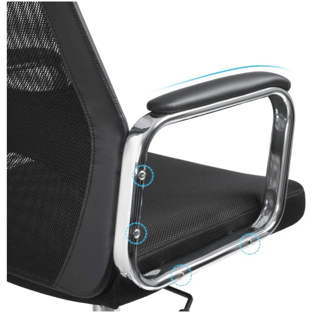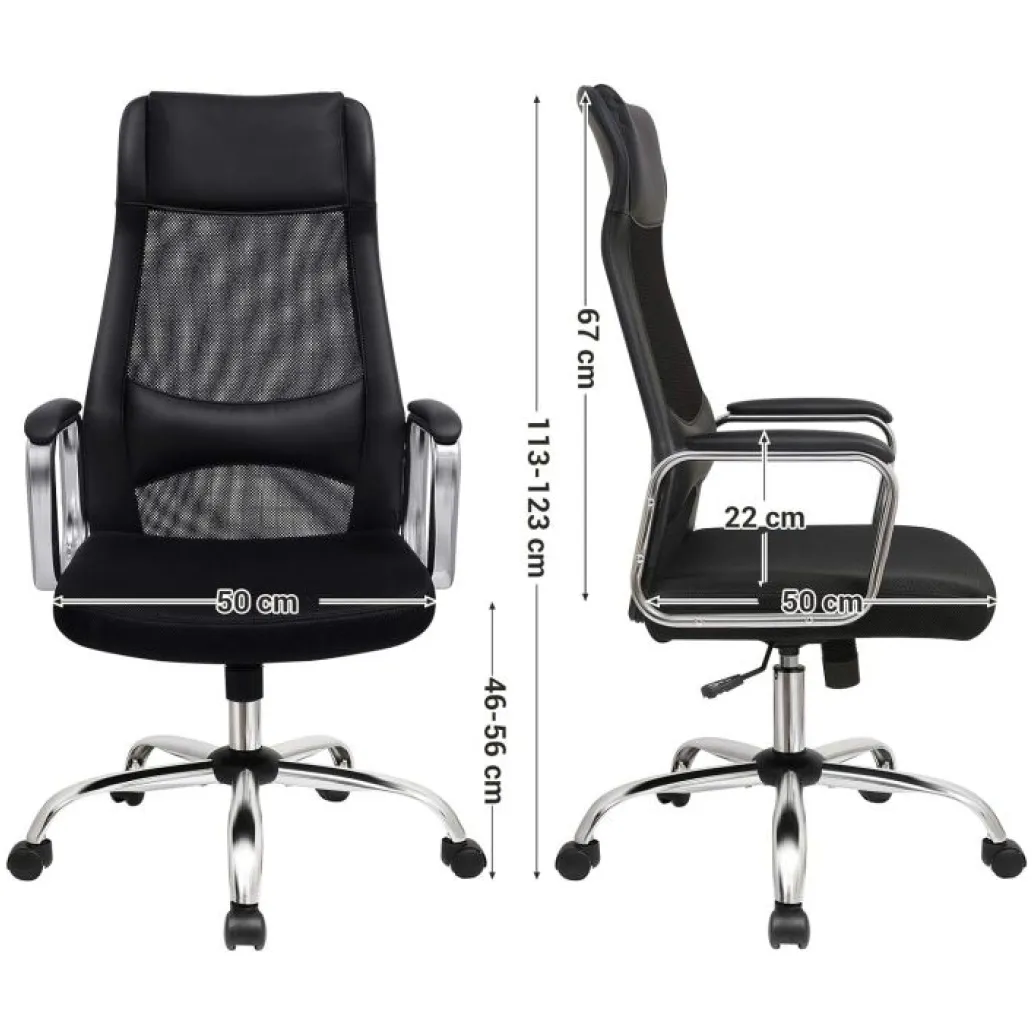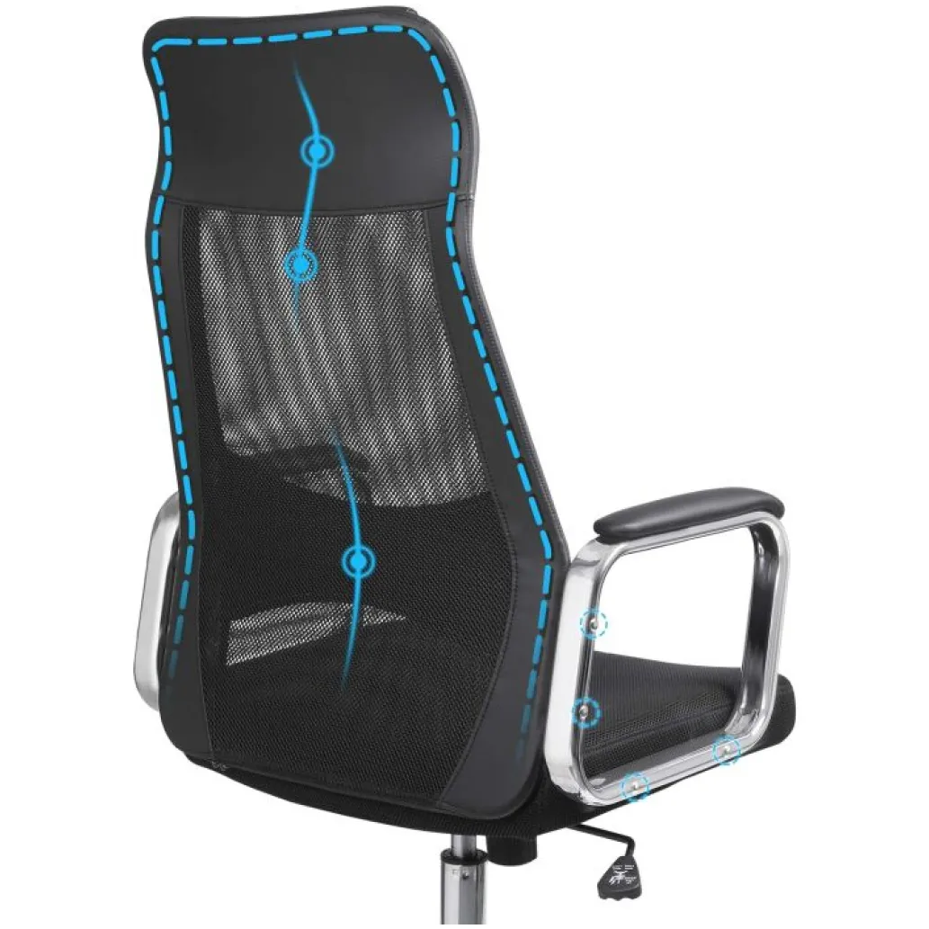 SONGMICS OBN33BK Pisarniški stol Mesh Chair Ergonomski računalniški stol Dihajoče naslonjalo z oporo za glavo in ledveno oporo Nastavljiva višina do 120 kg nosilnosti Črna