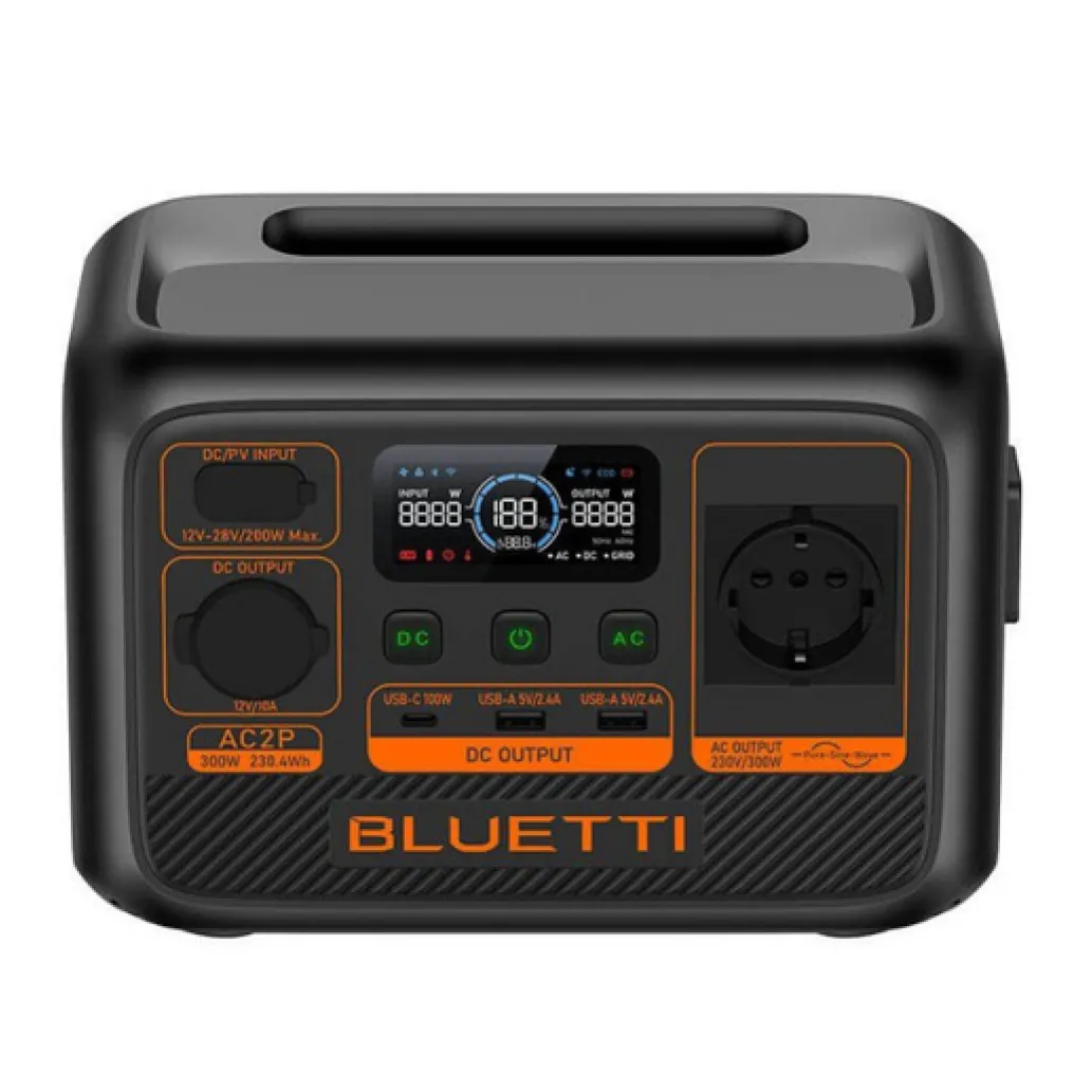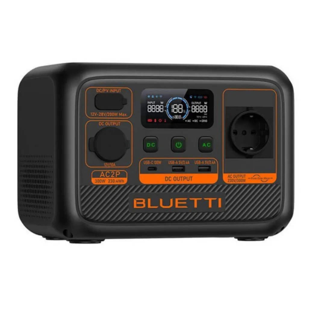 BLUETTI AC2P je izjemno lahka in uporabniku prijazna energetska shramba. Z zmogljivostjo 230 Wh in izhodom moči 300 W lahko pokrije večino potreb po električni energiji. Napolni se do 80% kapacitete v samo 45 minutah, kar ga naredi popolnega spremljevalca pri zunanjih dejavnostih, nujni pomoči, potovanjih z RV-jem in še več.