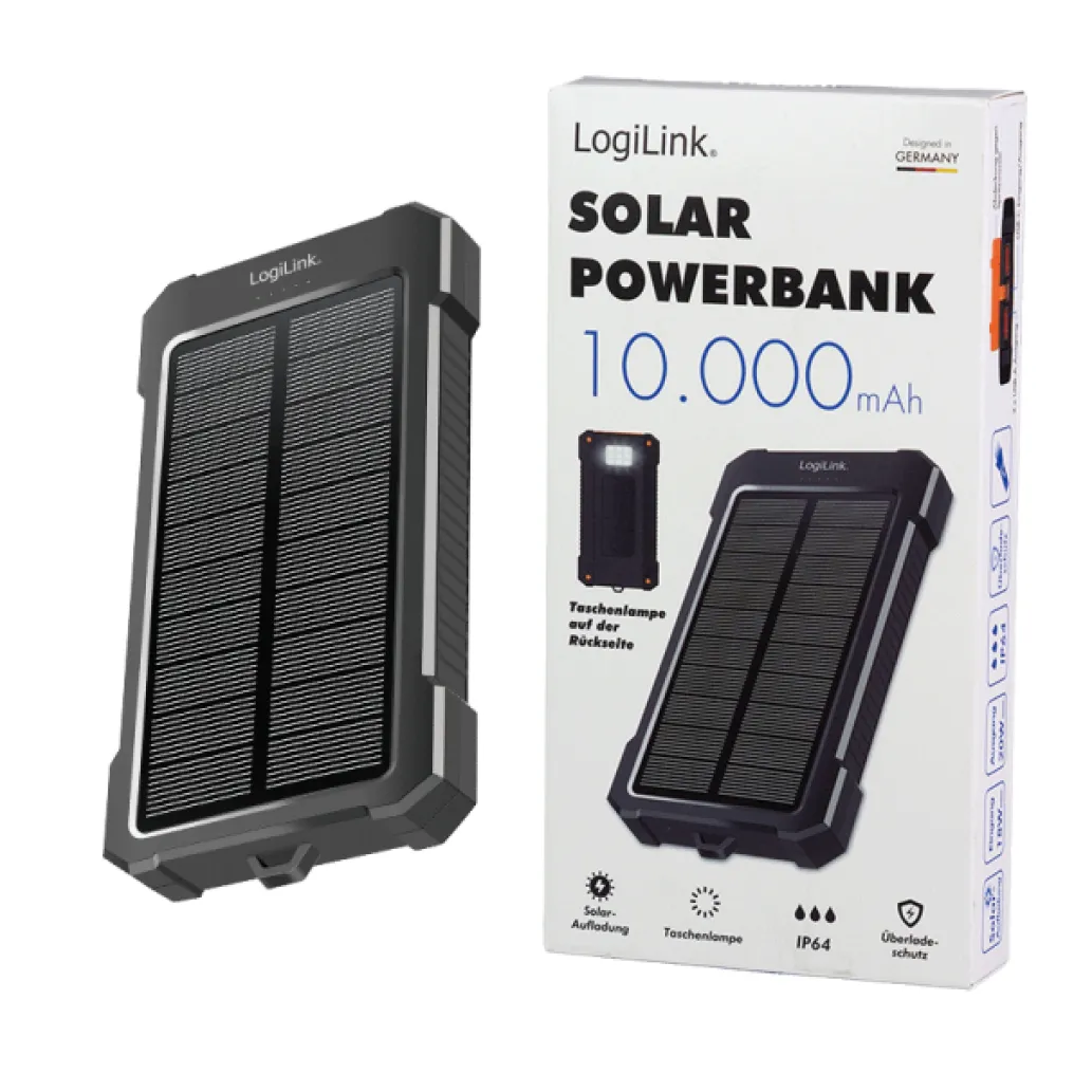 Prenosna baterija Logilink 10.000mAh 20W 2x USB-A 1x USB-C solarna črna (PA0390)