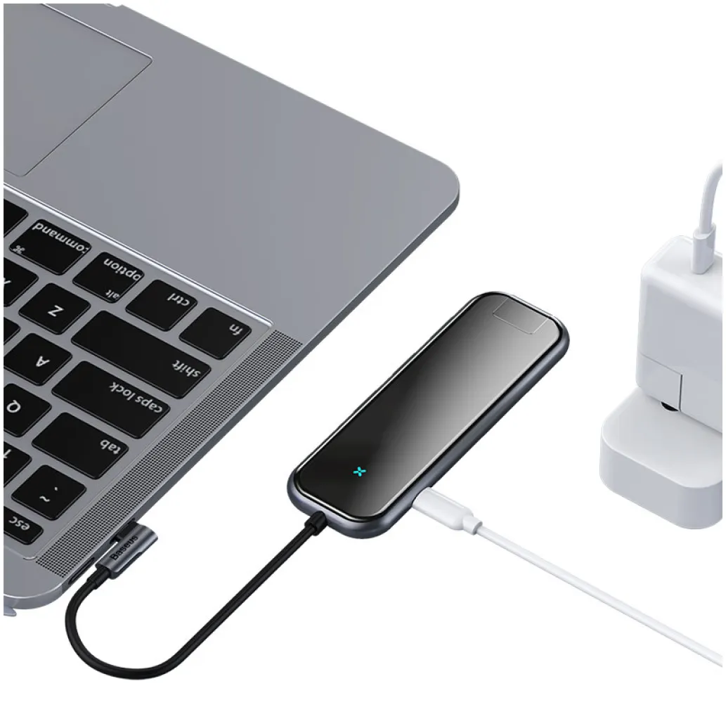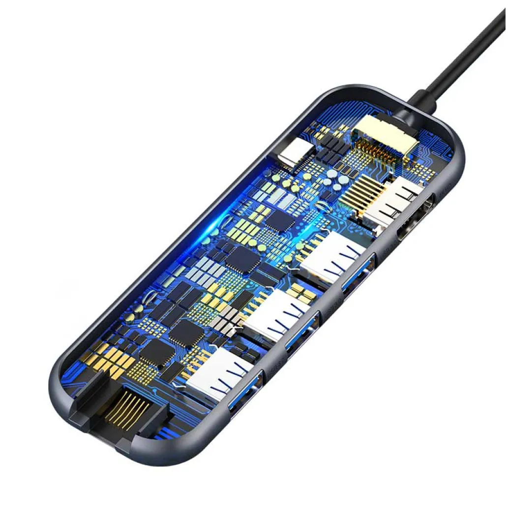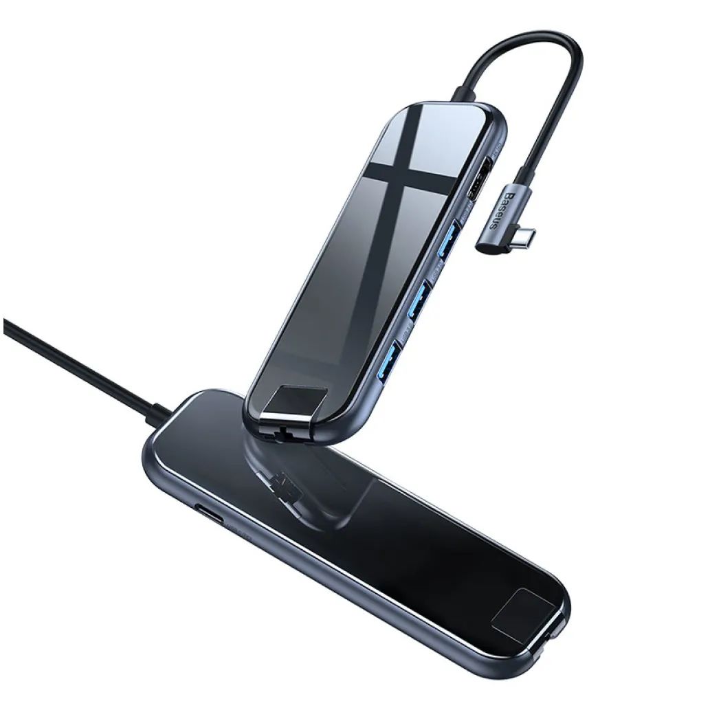 Baseus CHUB-DZ0G. Gostiteljski vmesnik: USB 3.2. generacija 1 (3.1 Gen 1) Type-C, vmesniki zvezdišča: HDMI, RJ-45, USB 3.2. generacija 1 (3.1 Gen 1) Type-A, USB 3.2. generacija 1 (3.1 Gen 1) Type-C, največja ločljivost (HDMI): 3840 x 2160 slikovnih pik. Hitrost prenosa podatkov: 5000 Mbit/s, Barva izdelka: Črna, Material ohišja: Akrilonitril butadien stiren (ABS), Aluminij, Kaljeno steklo.