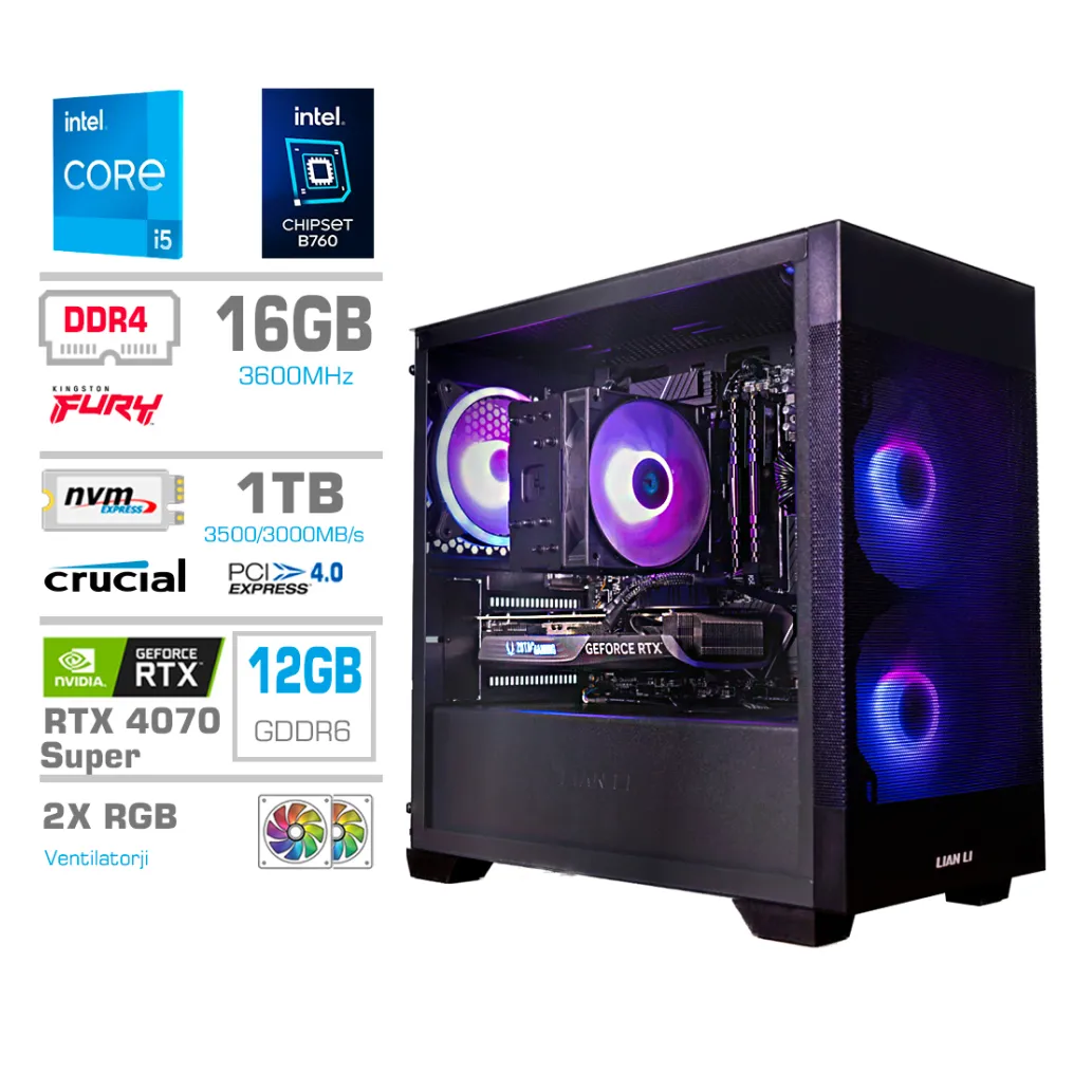 Z B760 matično ploščo kot osnovo, naši računalniki omogočajo enostavno razširitev in prilagoditev, ki jo potrebujete. Možnost vgradnje vodnega hlajenja za procesor dodatno izboljša zmogljivost in zanesljivost, kar zagotavlja, da vaš sistem deluje vedno na najvišji ravni.