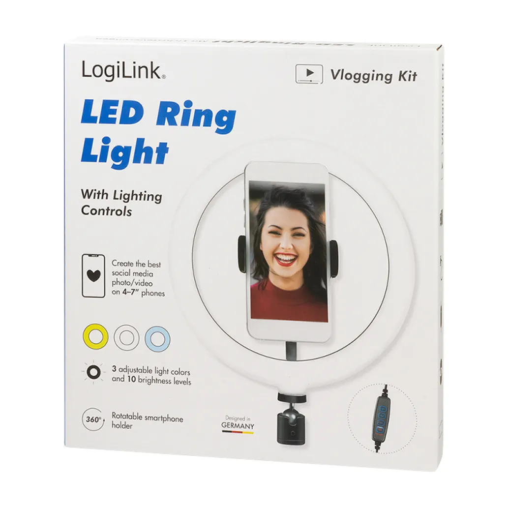 Selfie LED svetlobni obroč Logilink za pametni telefon- tripod ni vključen (AA0151)