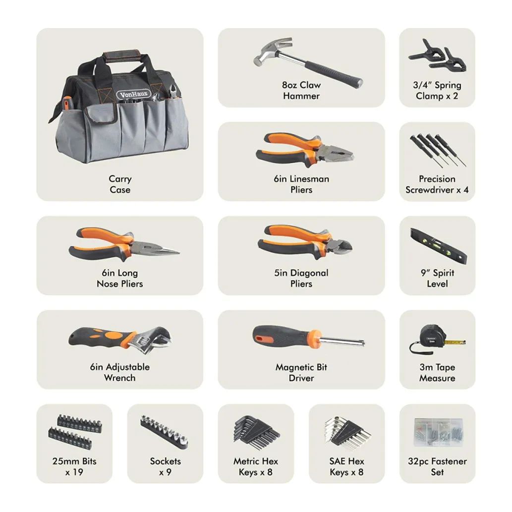 Celovit in kvaliteten 92-delni komplet orodja – primeren za vsakodnevna opravila v gospodinjstvu in za projekte domačih mojstrov