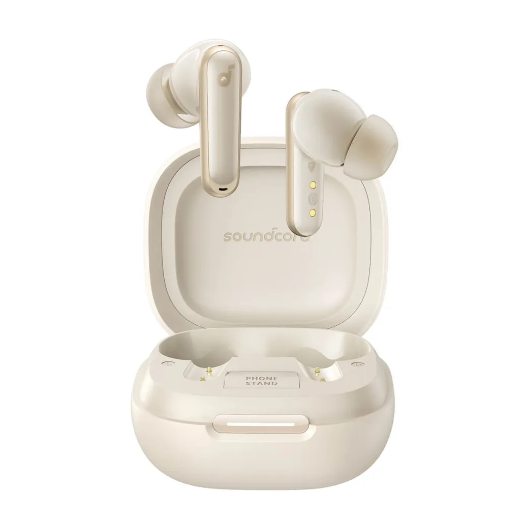 ušesne slušalke soundcore P40i z odpravljanjem šumov, izboljšane s 6 mikrofoni in algoritem umetne inteligence vam omogoča, da uživate v jasni komunikaciji, bodisi med klicem ali prek videoklepeta vaš glas se prenaša z jasnostjo in močjo. - Polnilni etui 2 v 1 in stojalo za telefon: