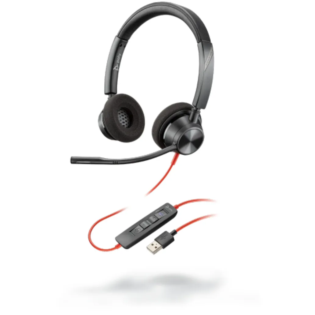 POLY Blackwire 3320. Vrsta izdelka: Slušalke, Način nošenja: Naglavni trak, Priporočena uporaba: Pisarna/klicni center. Tehnologija povezovanja: Žična, Vrsta priključka USB: USB Type-A. Položaj zvočnika slušalk: Na ušesu, Frekvenca slušalk: 20 – 20000 Hz, Impedanca: 32 ohmov. Vrsta mikrofona: Boom Frekvenca mikrofona: 100-10000Hz Teža: 130g