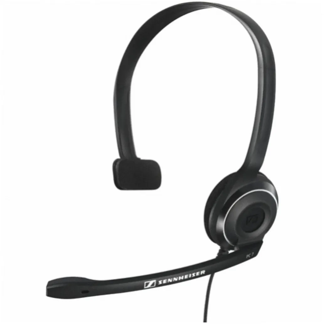 Sennheiser PC 7 USB. Vrsta izdelka: Slušalke, Način nošenja: Trak za glavo, Priporočena uporaba: Pisarna/klicni center. Tehnologija povezovanja: Žična, Vrsta priključka USB: USB Type-A. Položaj zvočnika slušalk: Na ušesu, Akustični sistem: Zaprt, Frekvenca slušalk: 42 – 17000 Hz Vrsta mikrofona: Boom, Frekvenca mikrofona: 90 – 15000 Hz, Občutljivost mikrofona: -40 dB. Teža: 62 g