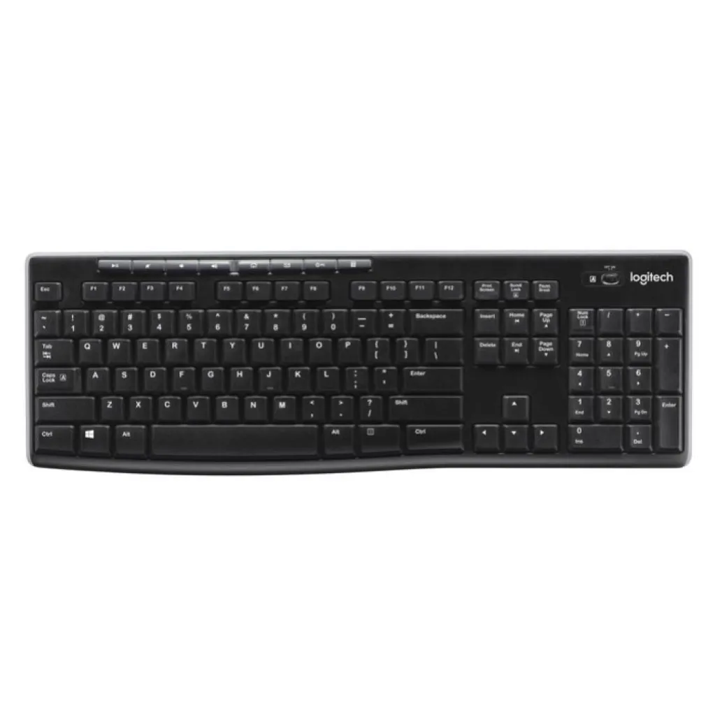 Brezžična tipkovnica Logitech K270. Faktor oblike tipkovnice: polna velikost (100 %). Slog tipkovnice: ravna. Tehnologija prenosa: Brezžična, Vmesnik naprave: Brezžična RF, Struktura tipkovnice: QWERTZ. Barva izdelka: Črna.