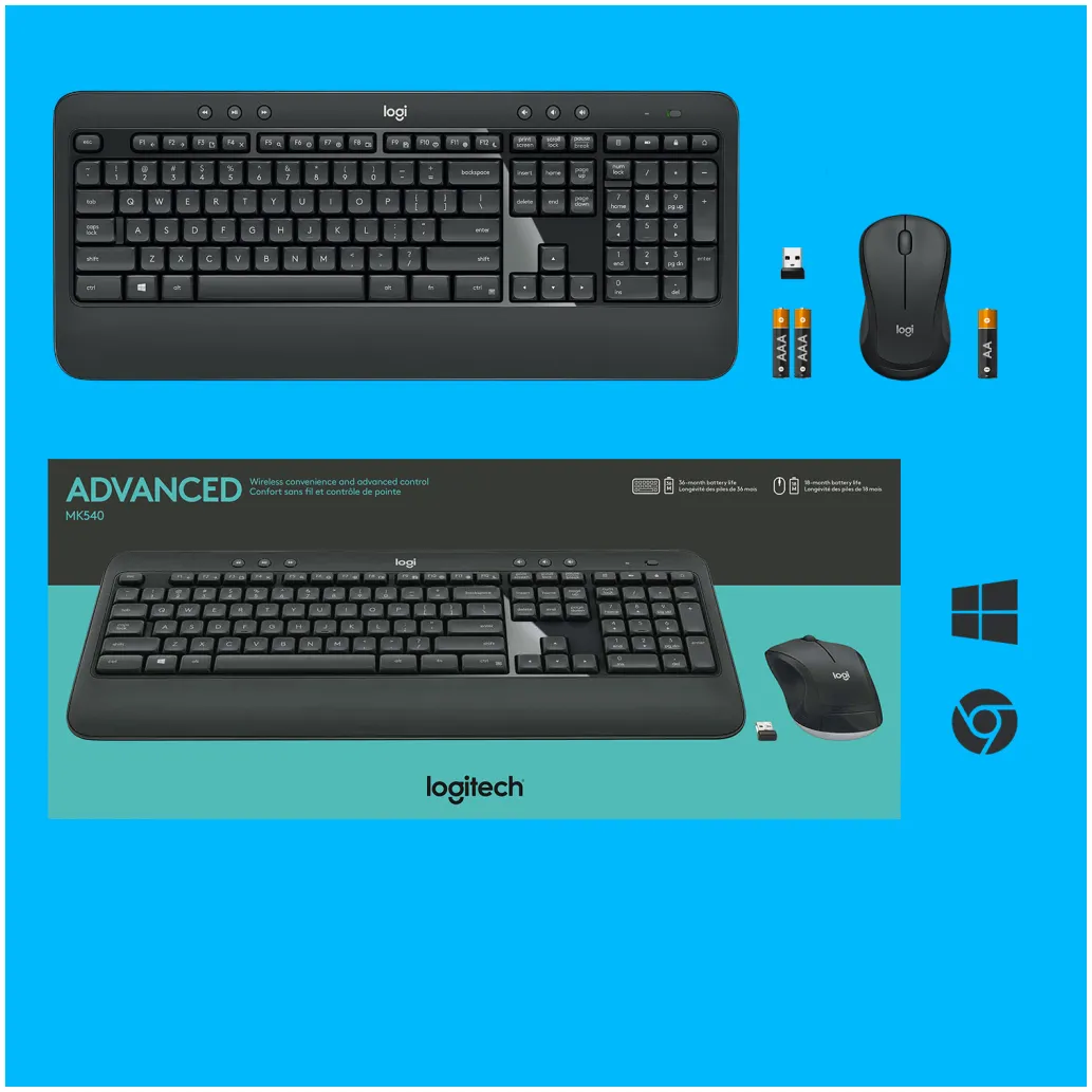 Napredni komplet tipkovnice in miške MK540, zasnovan za natančnost, enostavno uporabo in zanesljivost, zagotavlja takoj znano uporabniško izkušnjo. Tipkovnica polne velikosti ima tipke z znano obliko, velikostjo in teksturo – ukrivljena, dvostranska miška pa je posebej zasnovana tako, da se udobno prilega kateri koli dlani.