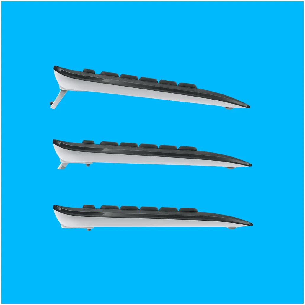 Tipke so optimizirane za visoko natančnost in nizek šum – in vaši prsti se bodo na udobnih tipkah v znani postavitvi takoj počutili kot doma. Naslon za dlani in nastavljive zložljive noge zagotavljajo enostavno uporabo tudi med dolgimi urami za mizo.