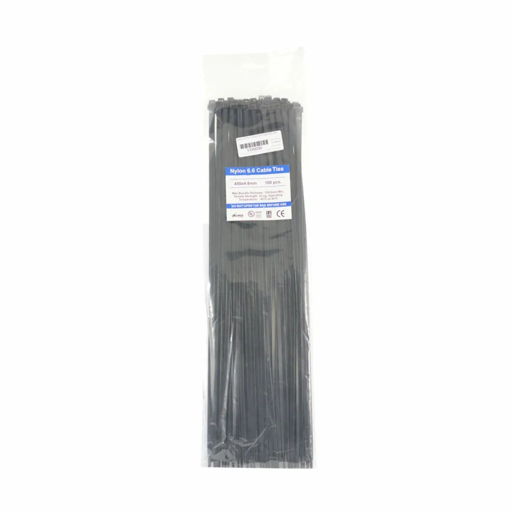 GW vezice za povezovanje in urejanje kablov. V dolžini 450mm in širini 4,8mm, so iz plastičnega materiala in pakirane po 100 kosov. Vezica je črne barve odporna na UV svetlobo in ne vsebuje halogenske in silikonske snovi…