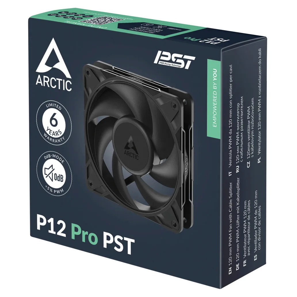 ARCTIC P12 Pro PST PWM je zmogljiv 120 mm ventilator za ohišje, zasnovan za zahtevne računalniške sestave. Zaradi visokega statičnega tlaka je idealen za uporabo na radiatorjih ali gostih mrežastih površinah. Tehnologija deljenja PWM (PST) omogoča učinkovito krmiljenje več ventilatorjev prek enega samega PWM signala – idealno za dobro prezračene, a tihe sisteme.