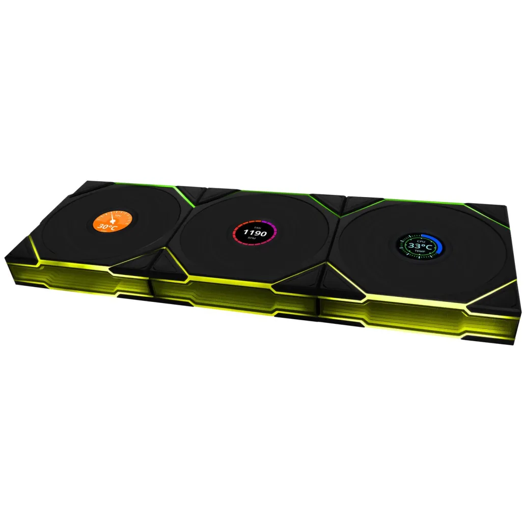 - Hitrost ventilatorja, LCD in osvetlitev nastavljivi s programsko opremo Lian Li L-Connect 3