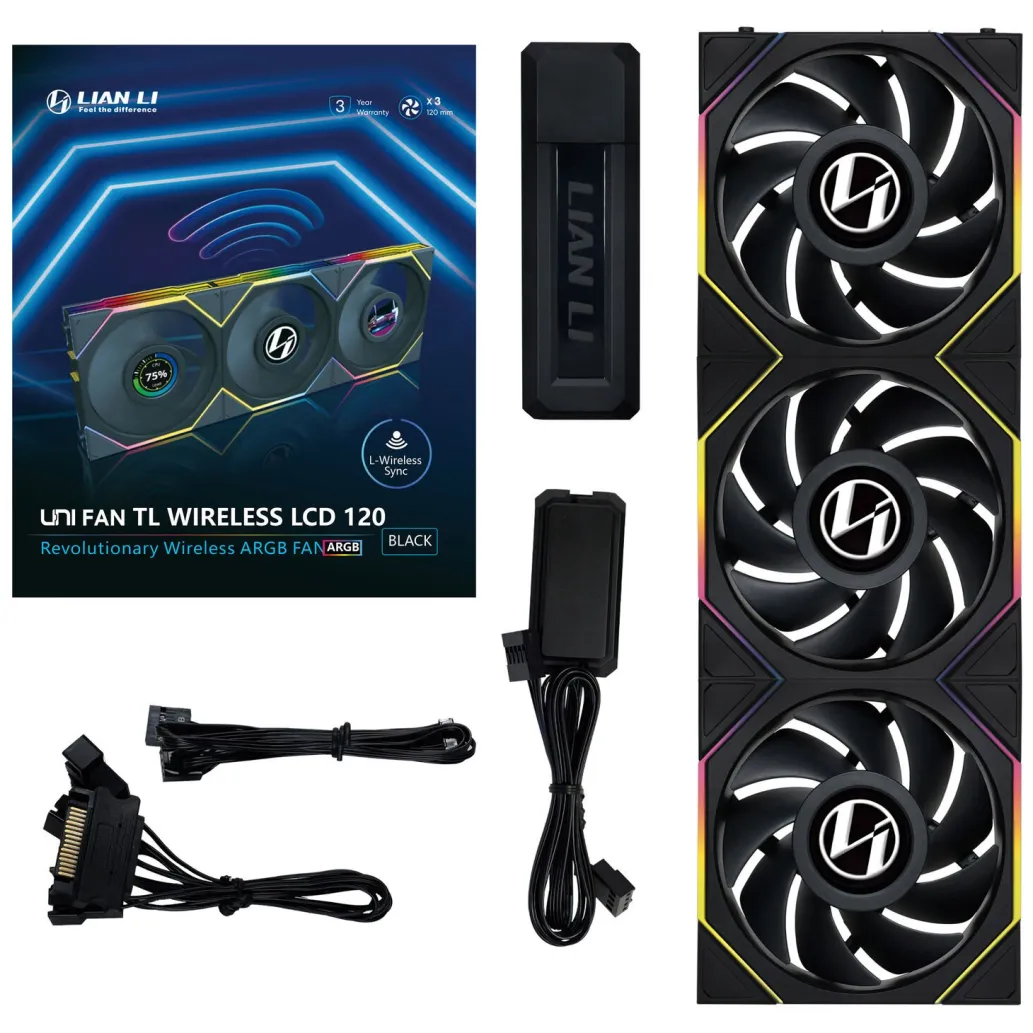 Brezžični LCD UNI FAN TL podjetja Lian Li zagotavlja učinkovito rešitev za upravljanje kablov v vašem računalniku. Z brezžičnim nadzorom 2,4 GHz za svetlobne učinke in hitrost ventilatorja boste potrebovali bistveno manj kablov, kar poenostavlja sestavo vašega sistema. Ventilator ponuja dvopodročne svetlobne učinke, je enostaven za namestitev in ima vgrajen LCD za prikaz sistemskih informacij ali grafike po meri.